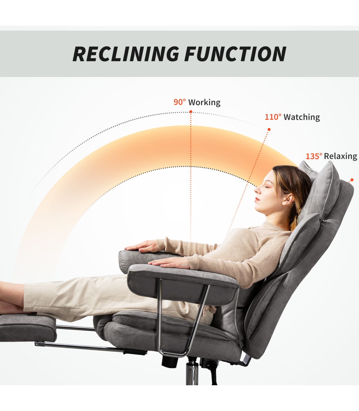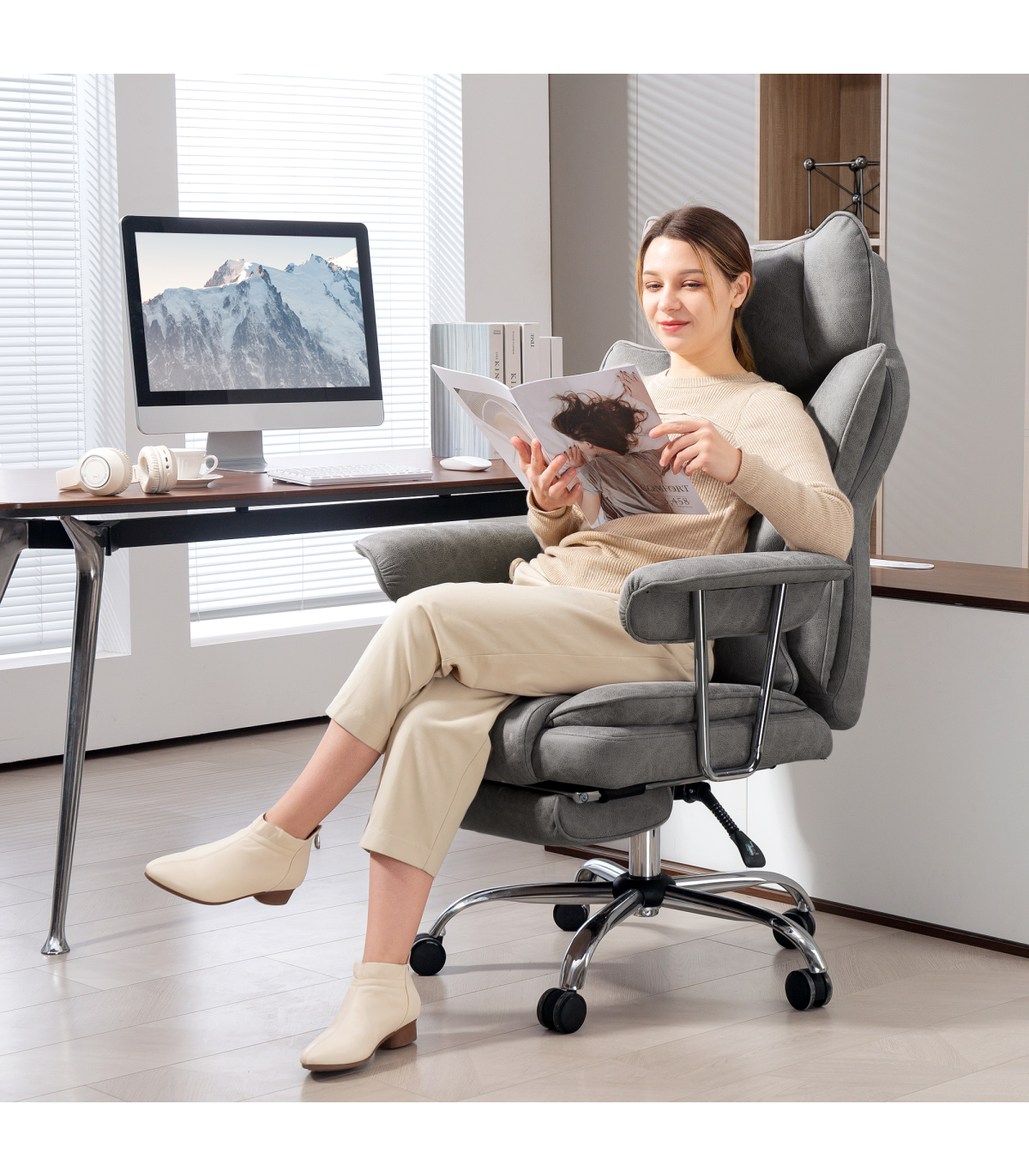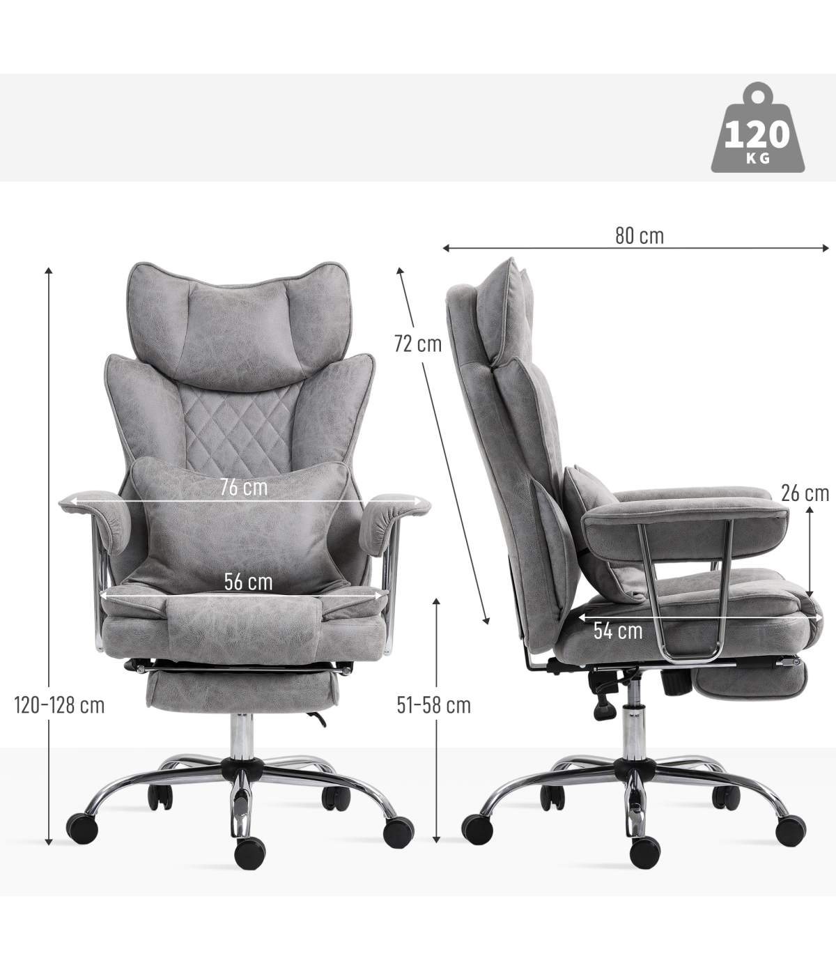 - High back design with a lumbar support pillow supports the entire spine during long hours