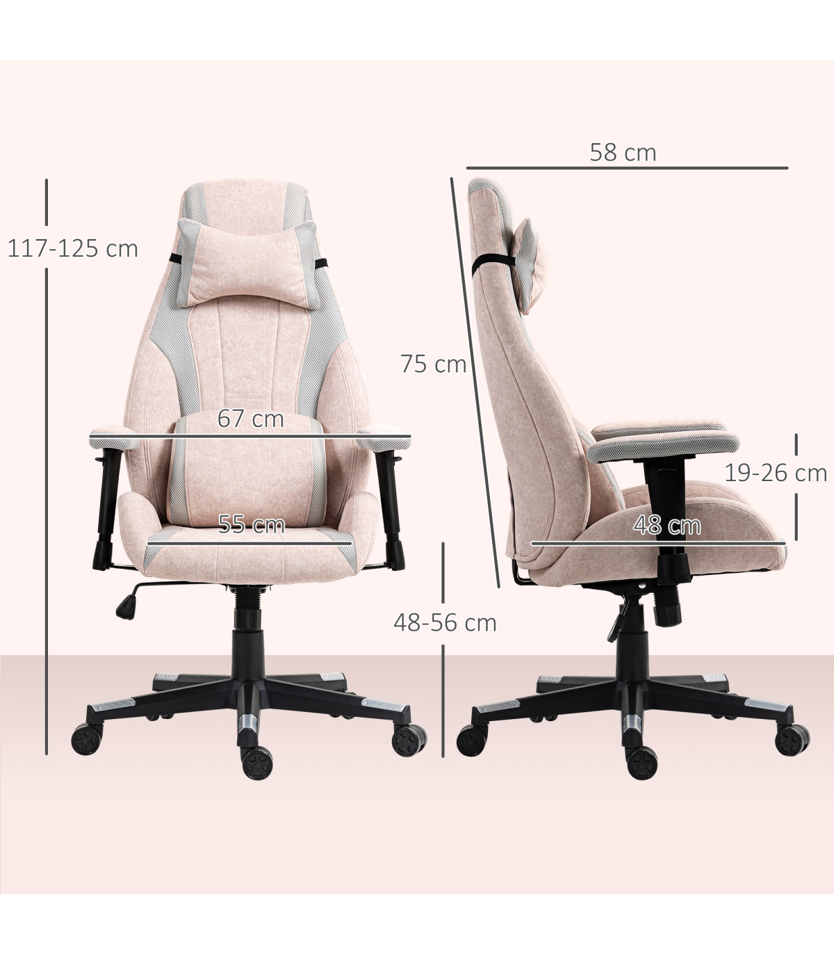 - Armrest Height to Seat: 19-26 cm