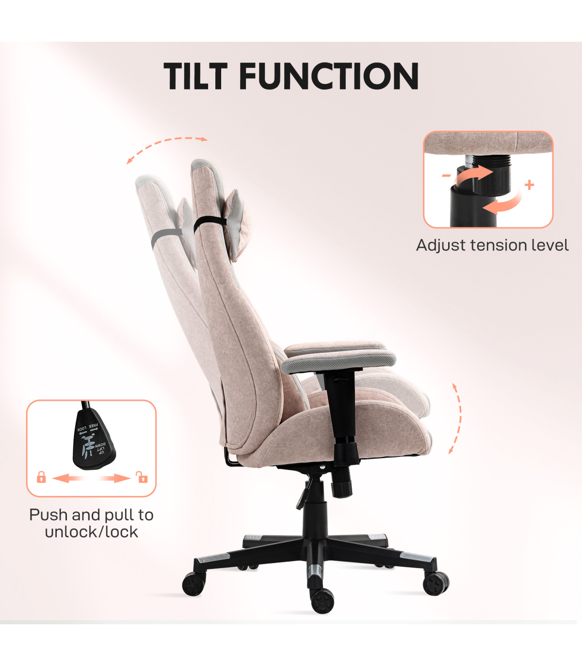 - Tilt function allows gentle rocking to relieve stress