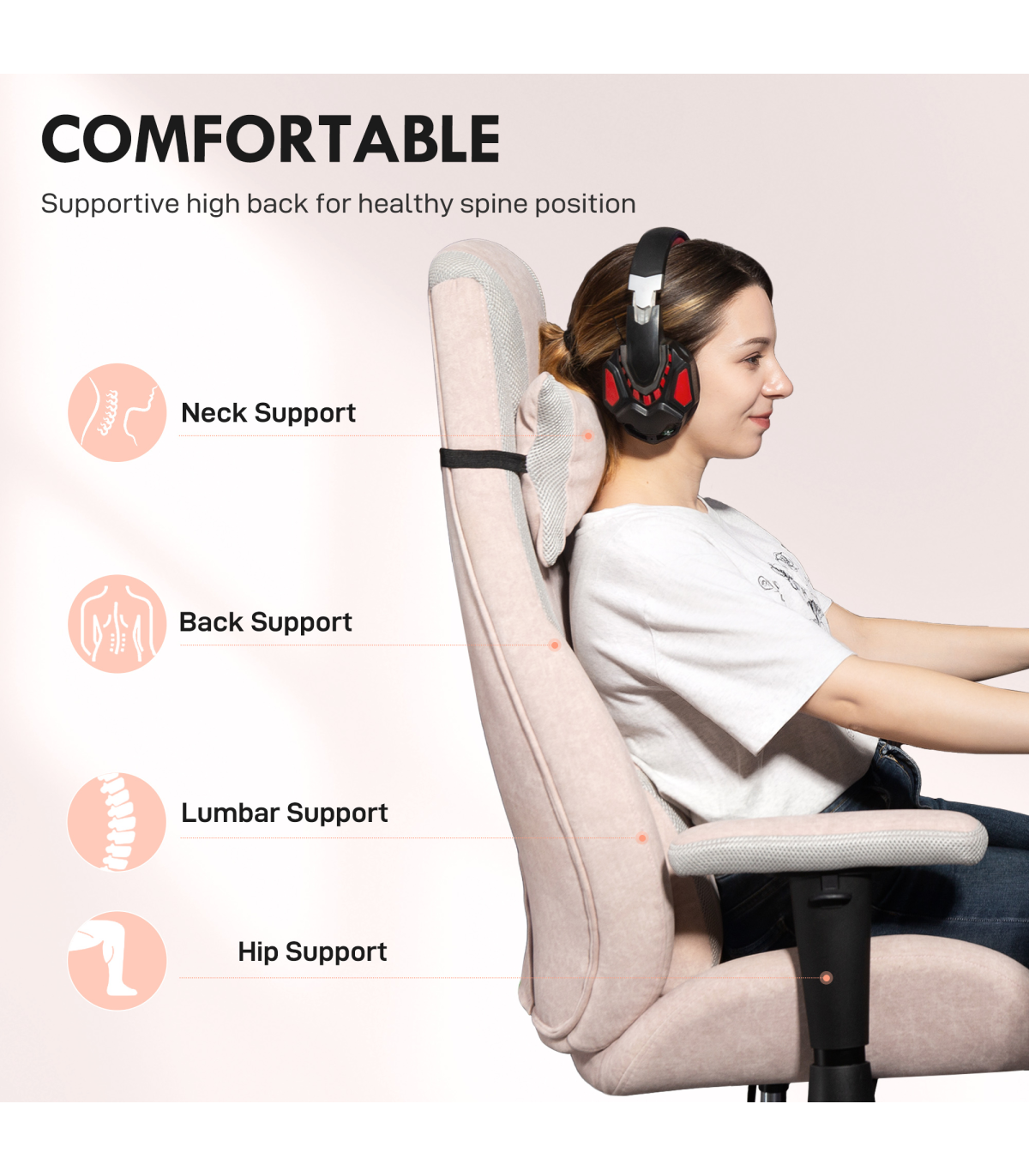- Lumbar and head pillows enhance neck and back support
