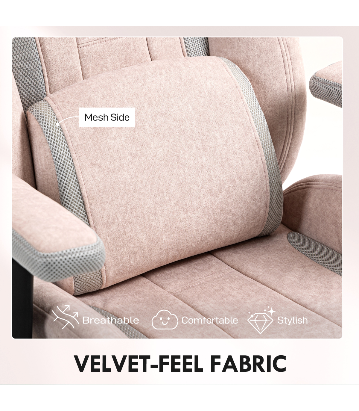 - Velvet-feel fabric with mesh sides offers breathability, comfort and style