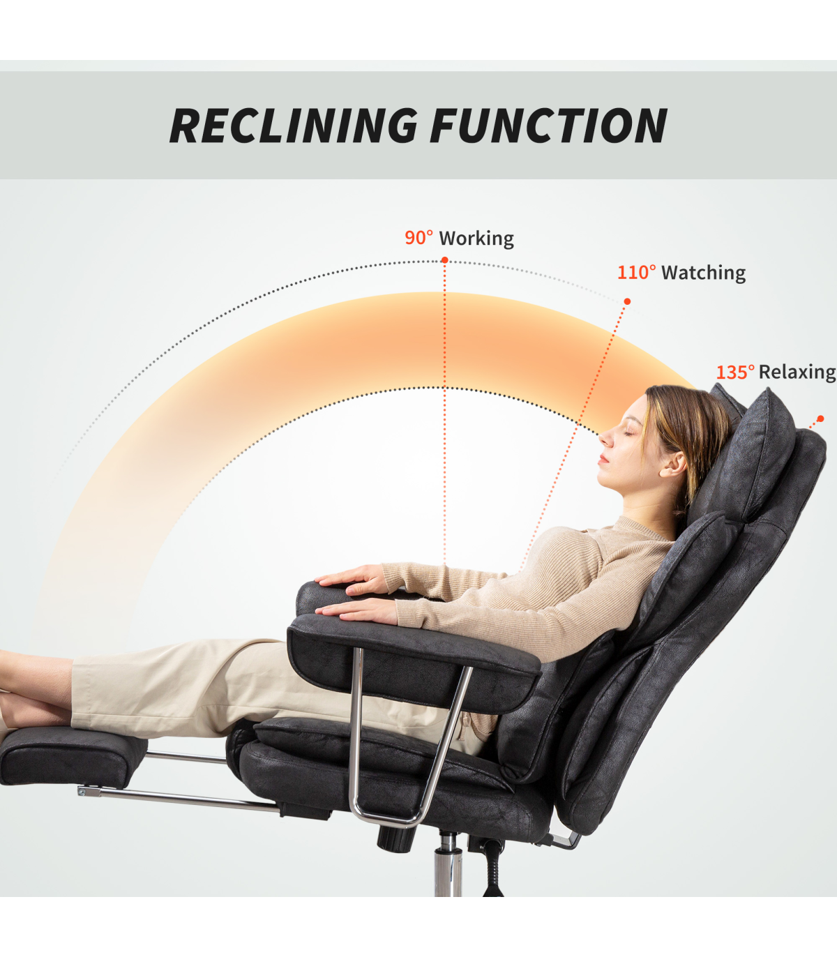 - High back design with a lumbar support pillow supports the entire spine during long hours