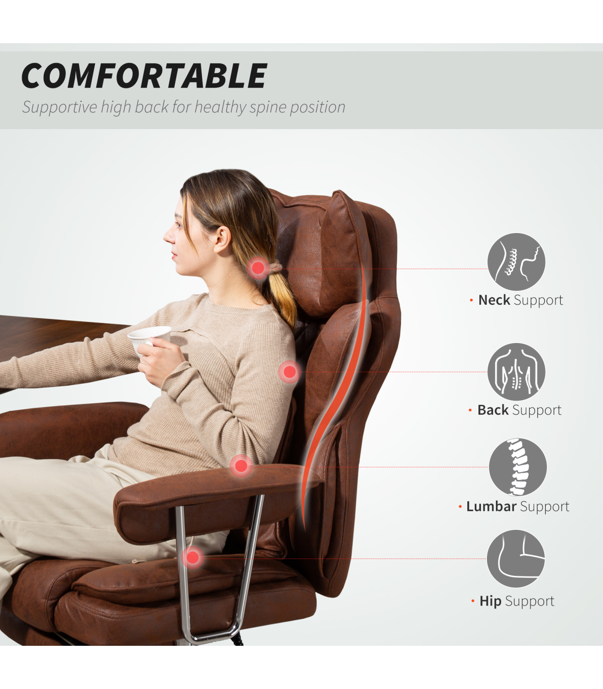- High back design with a lumbar support pillow supports the entire spine during long hours