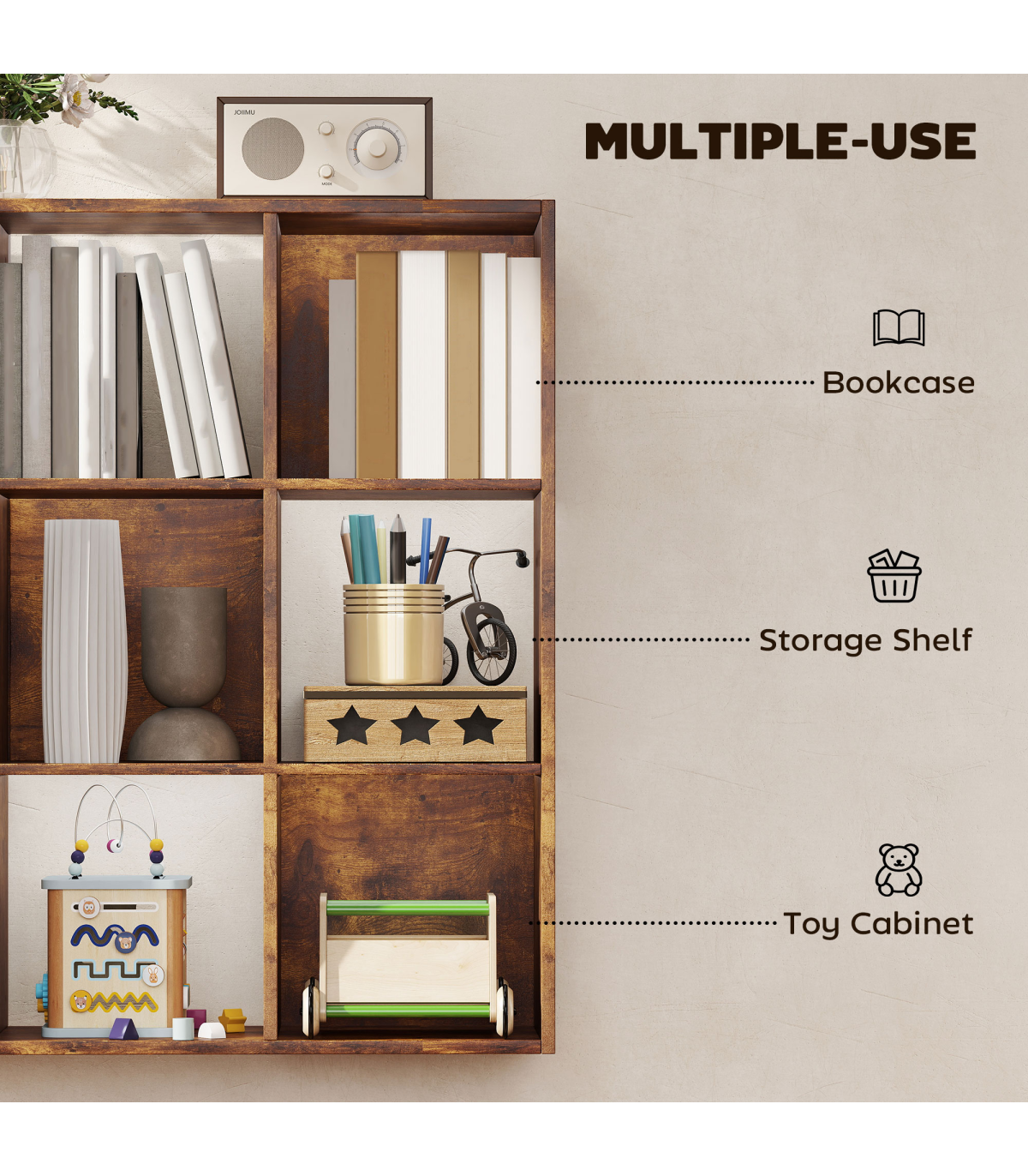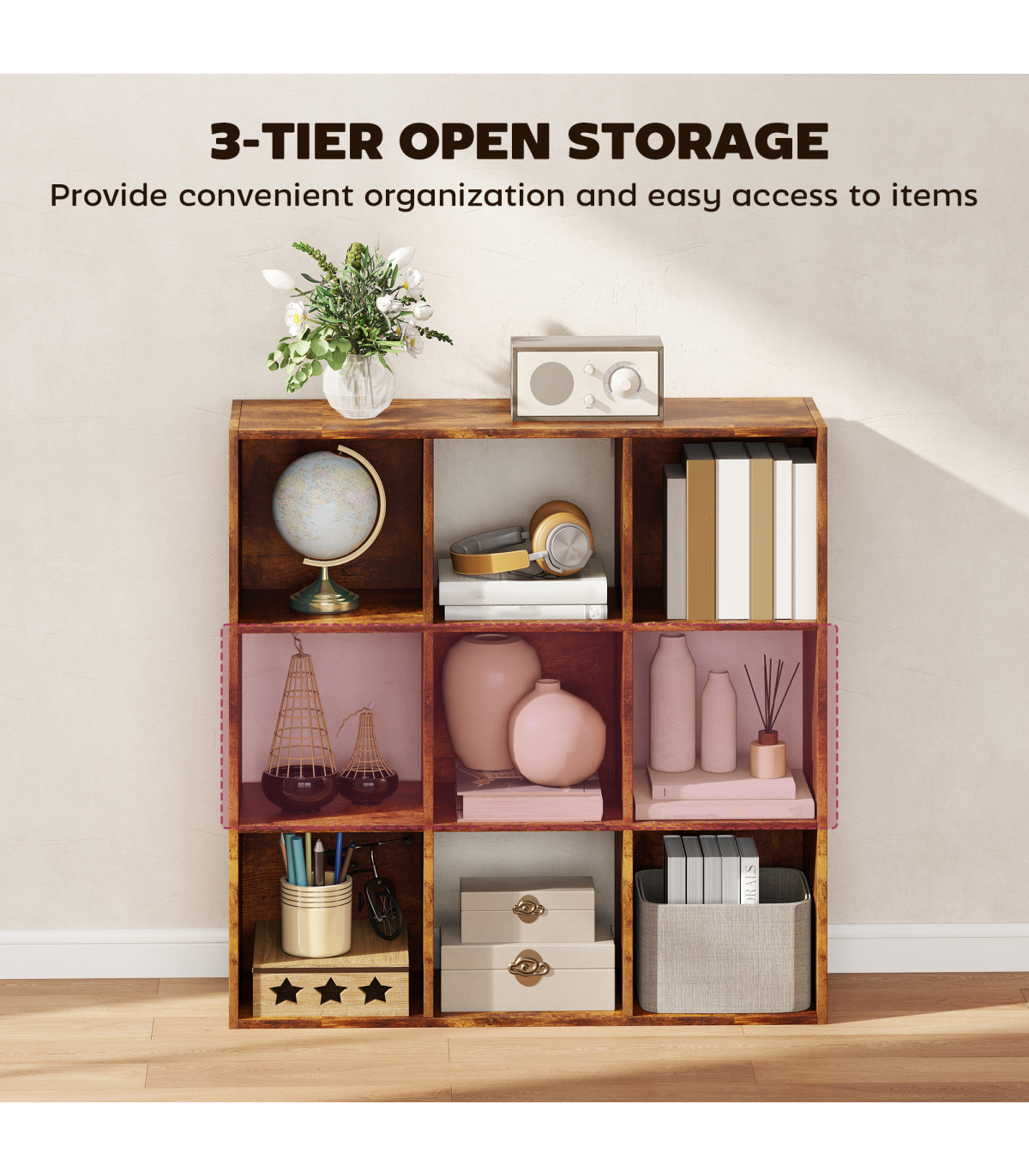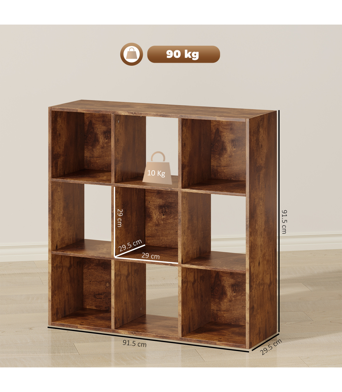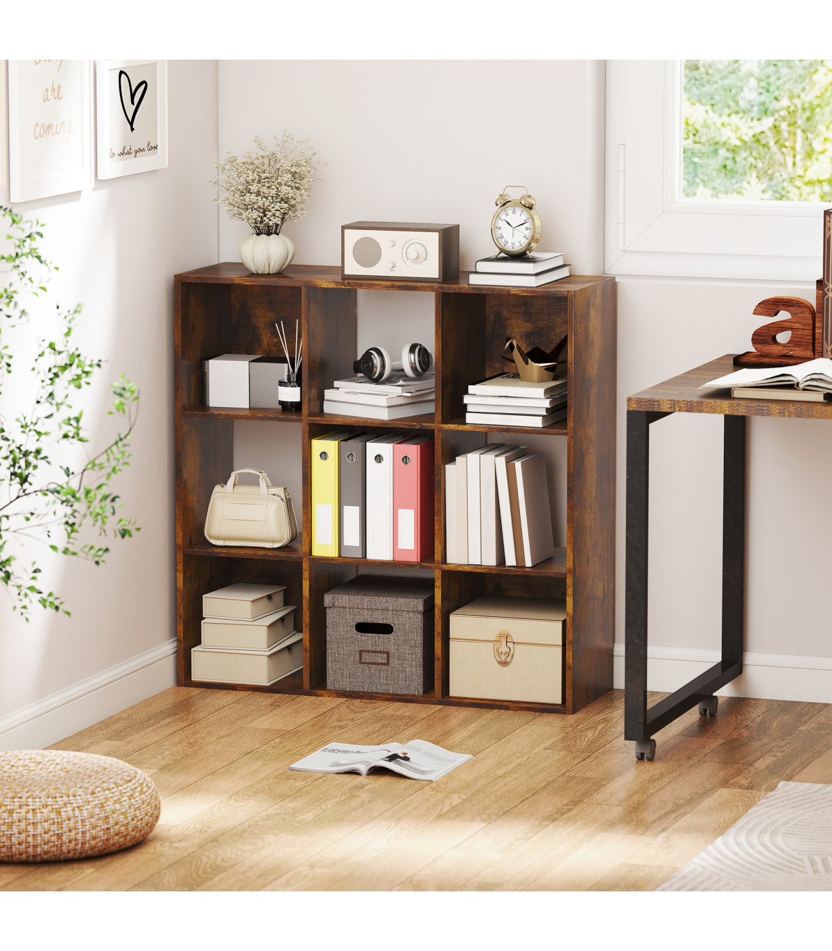 - 9 cubes provide generous storage space for accessories and essentials