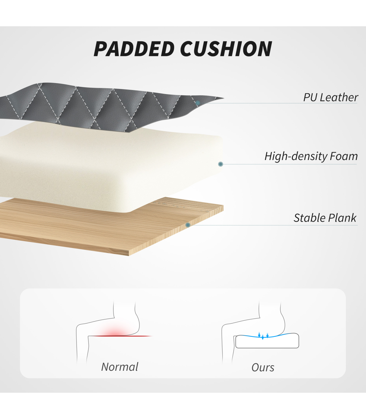 - High-density sponge filling for comfort, with sleek faux leather upholstery