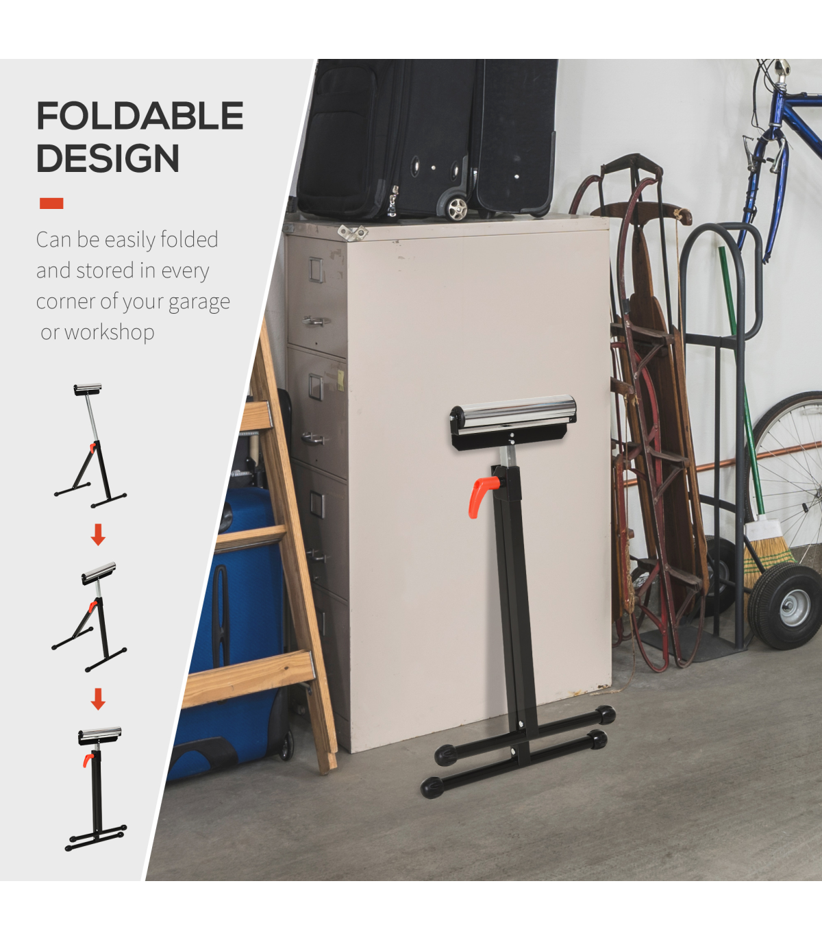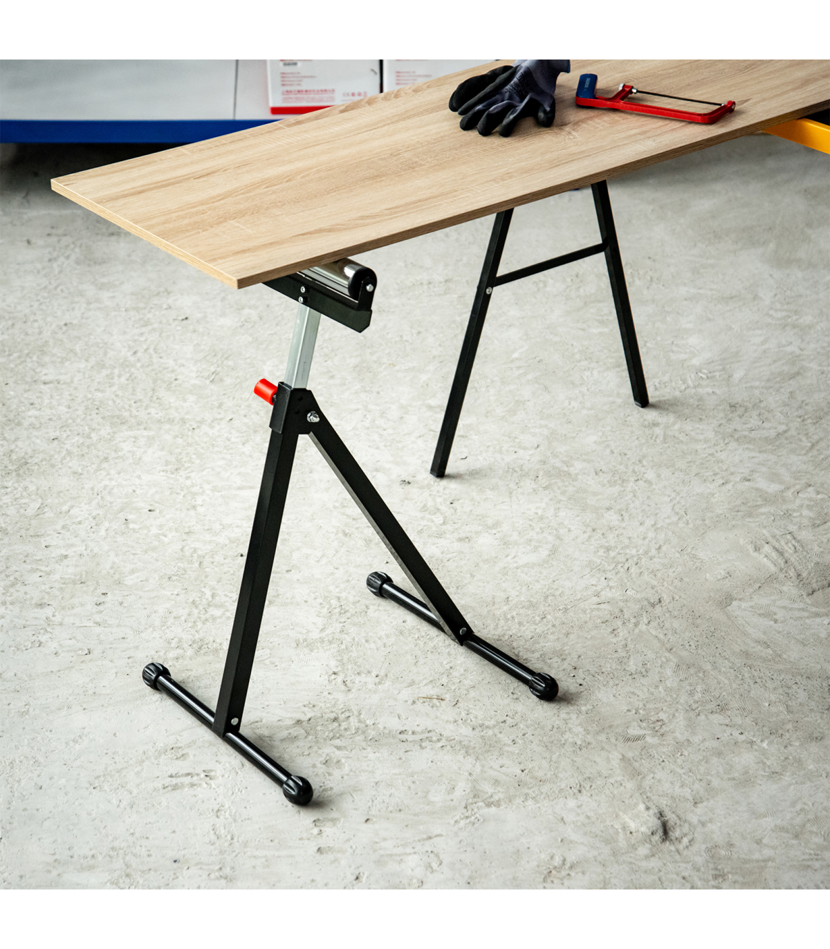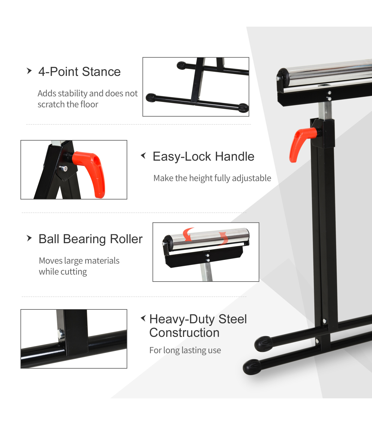 - No-slip feet keep the stand in place while it guides long materials