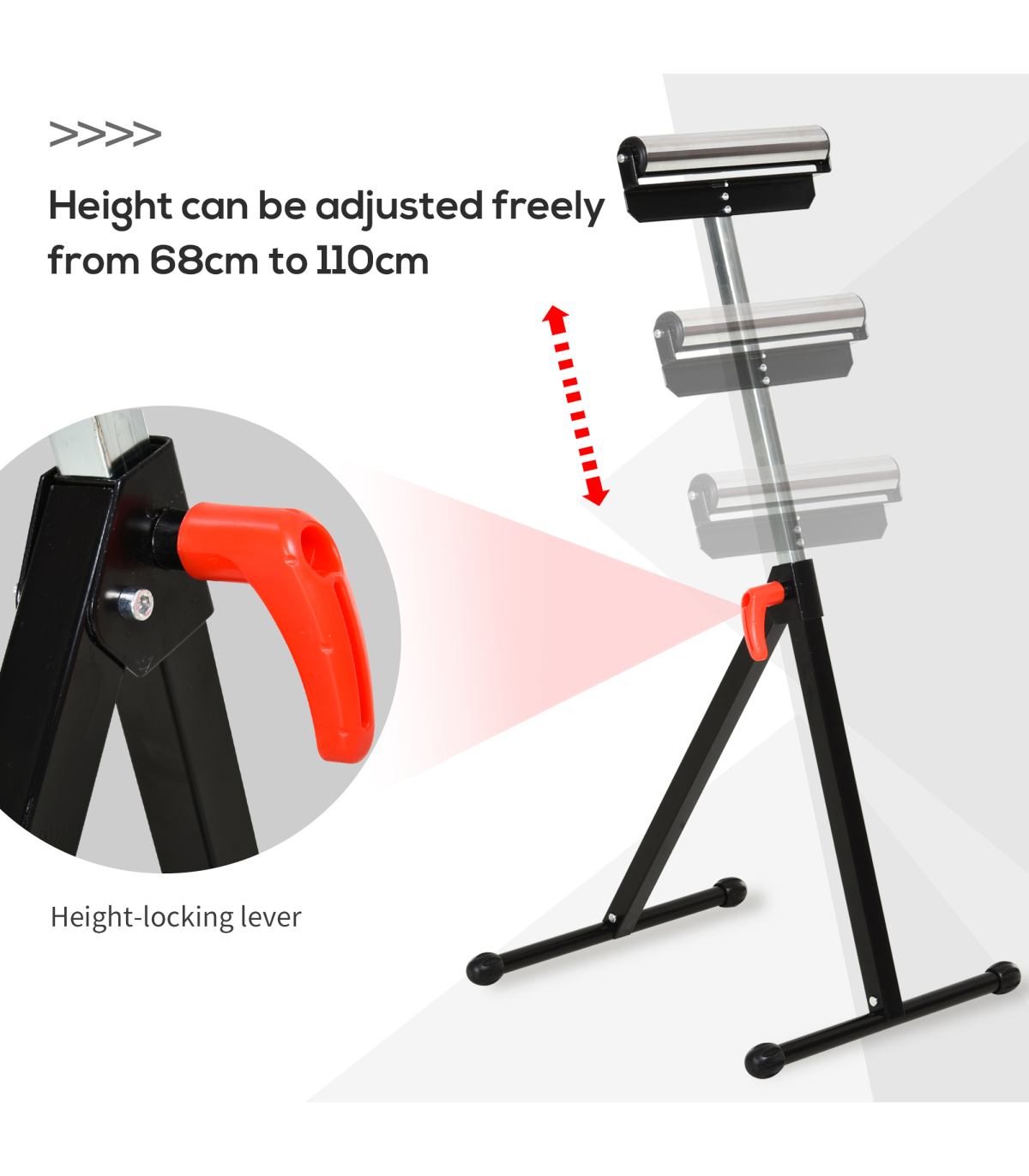 - The height is fully adjustable thanks to an easy-lock lever