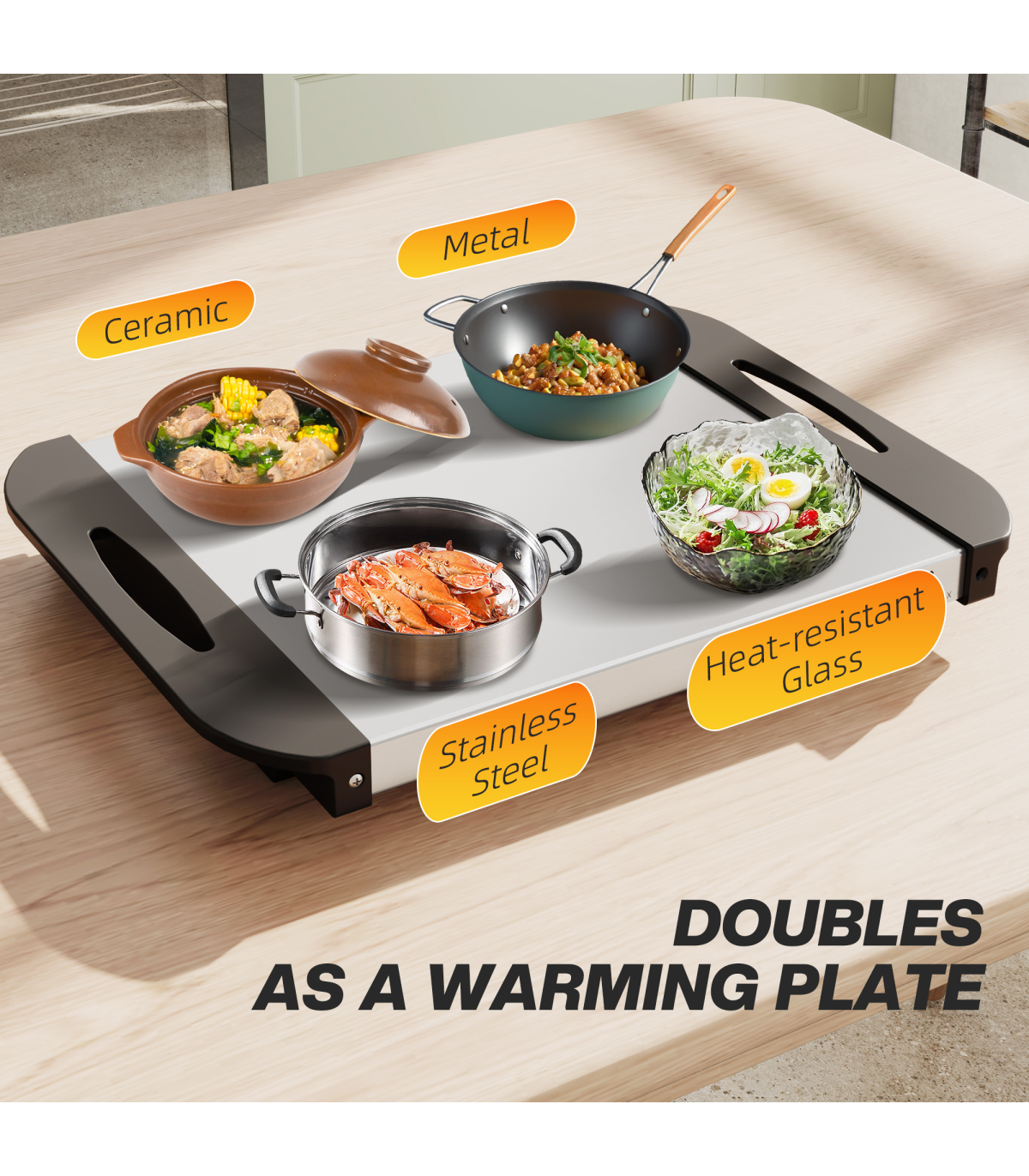 - Remove the three trays to convert into a warming plate, suitable for various tableware