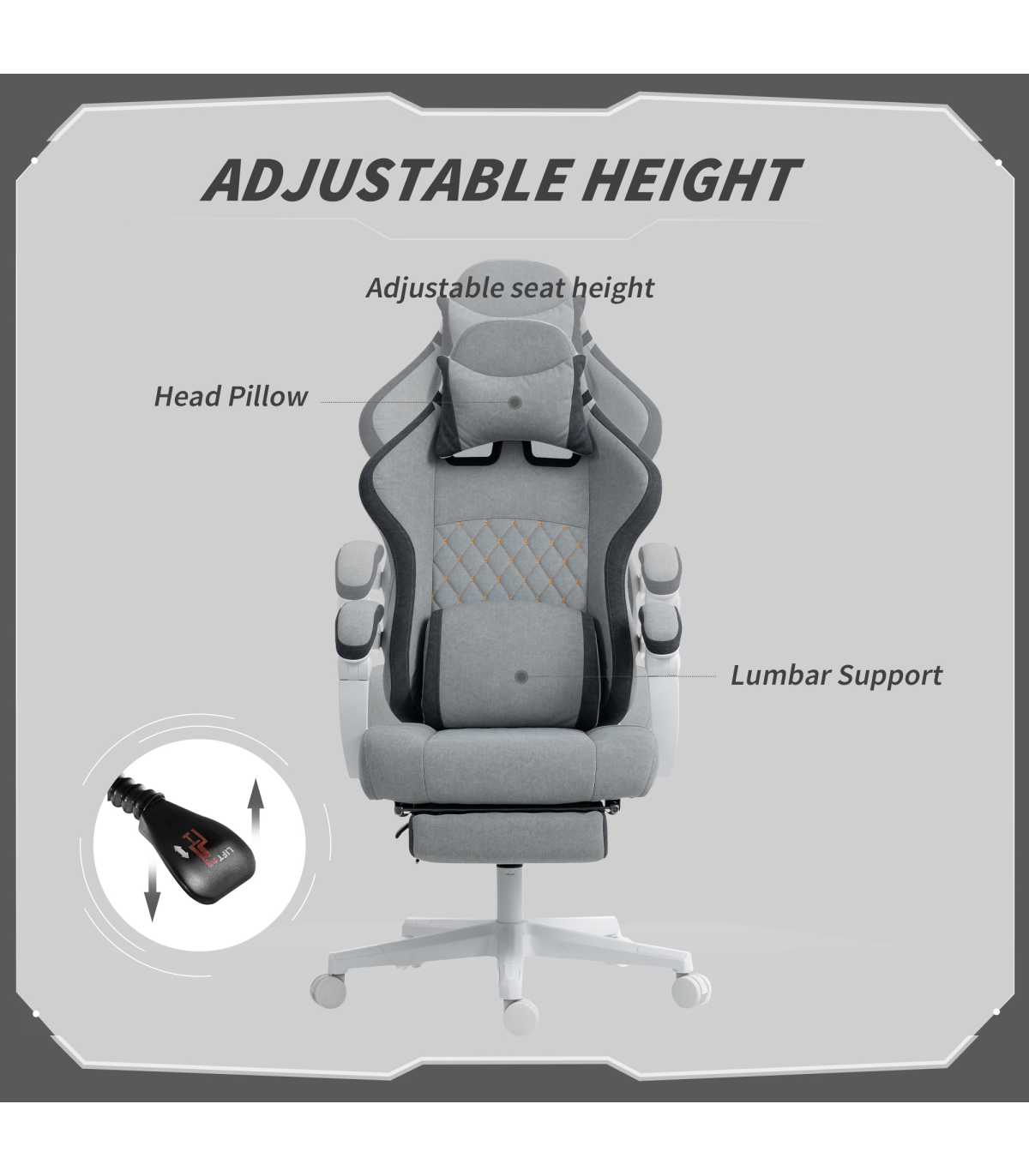 - Adjustable seat height with smooth three-level gas lift mechanism