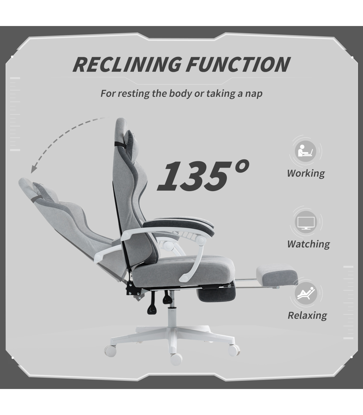 - Reclines up to 135° with linked armrests, lockable at any angle for versatility