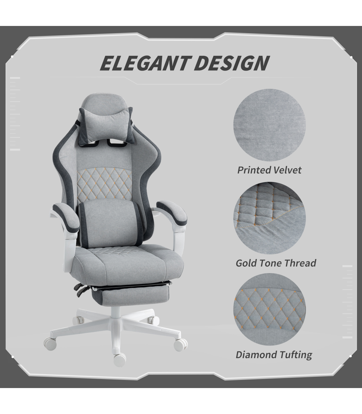 - Printed velvet with gold-tone thread diamond tufting design enhances aesthetic appeal