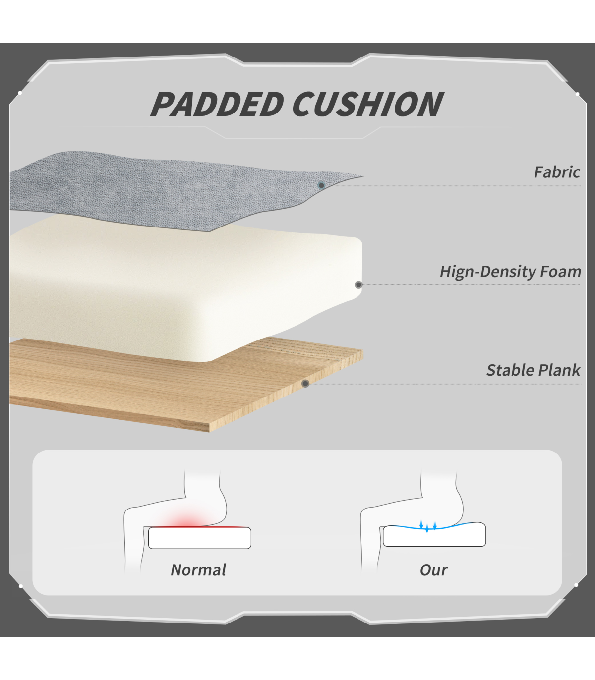 - High back and 10 cm thick seat with high-density fire retardant foam for safe, comfortable seating