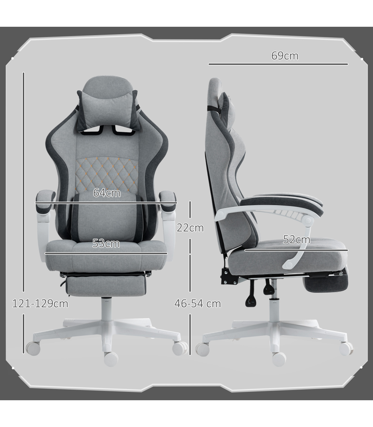 - Overall Dimensions: 64W x 69D x 121-129H cm