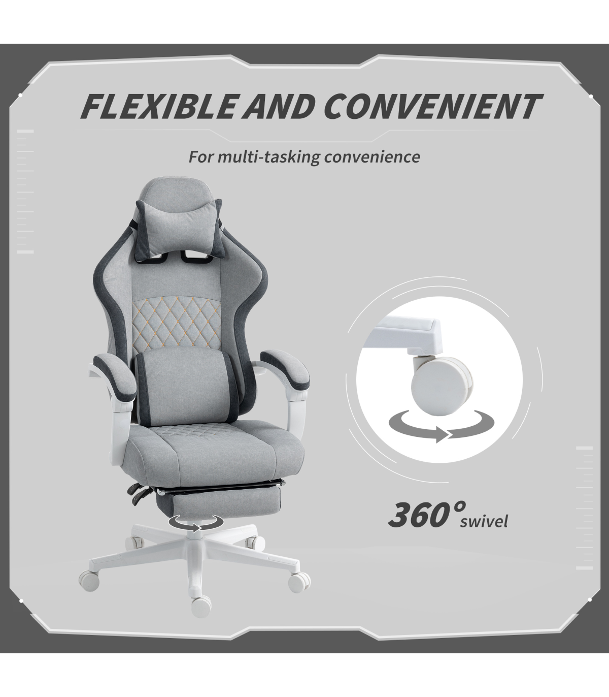 - Seat swivels 360° with large silent wheels