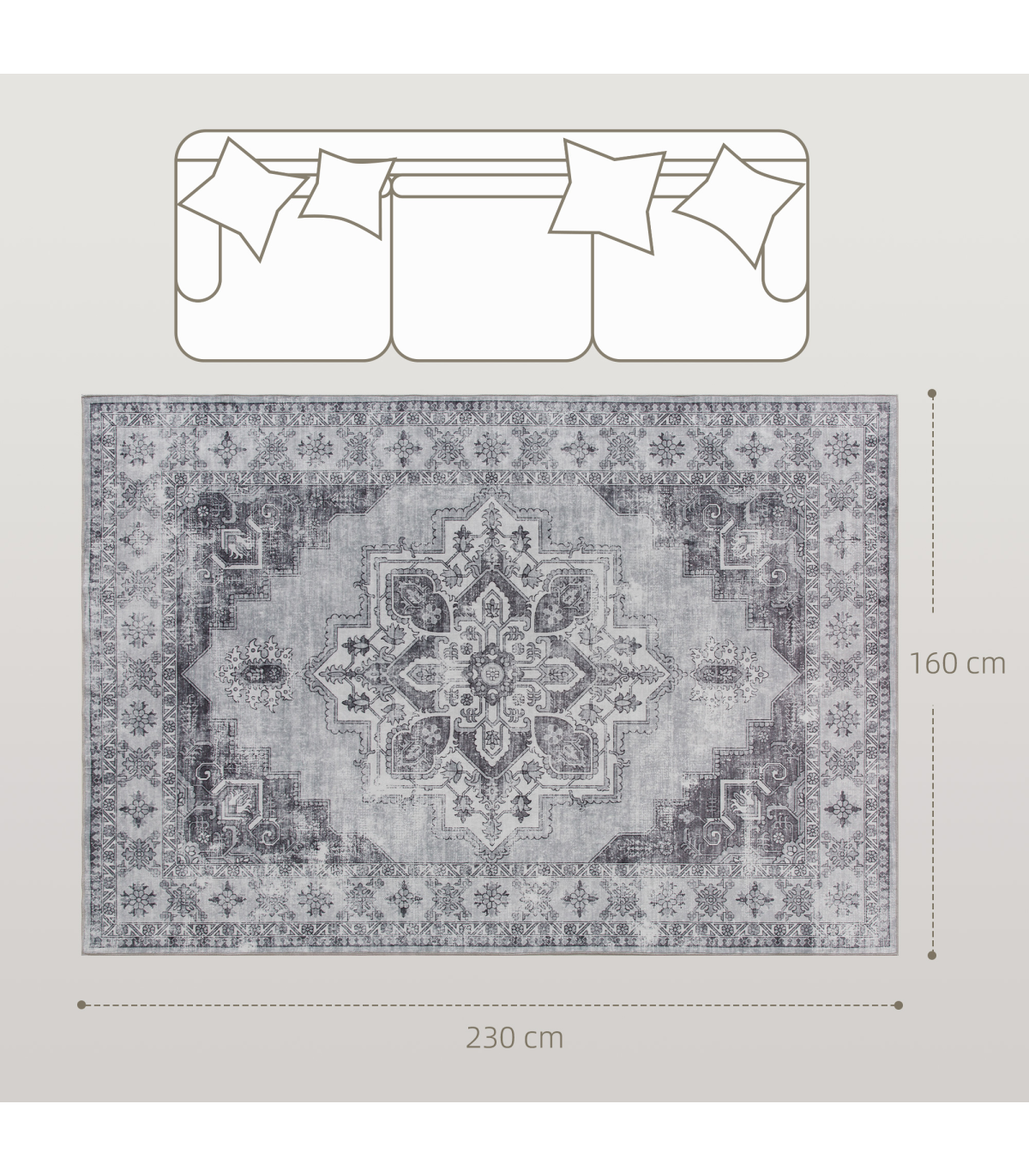 - Overall Dimension: 230W x 160D x 0.5H cm