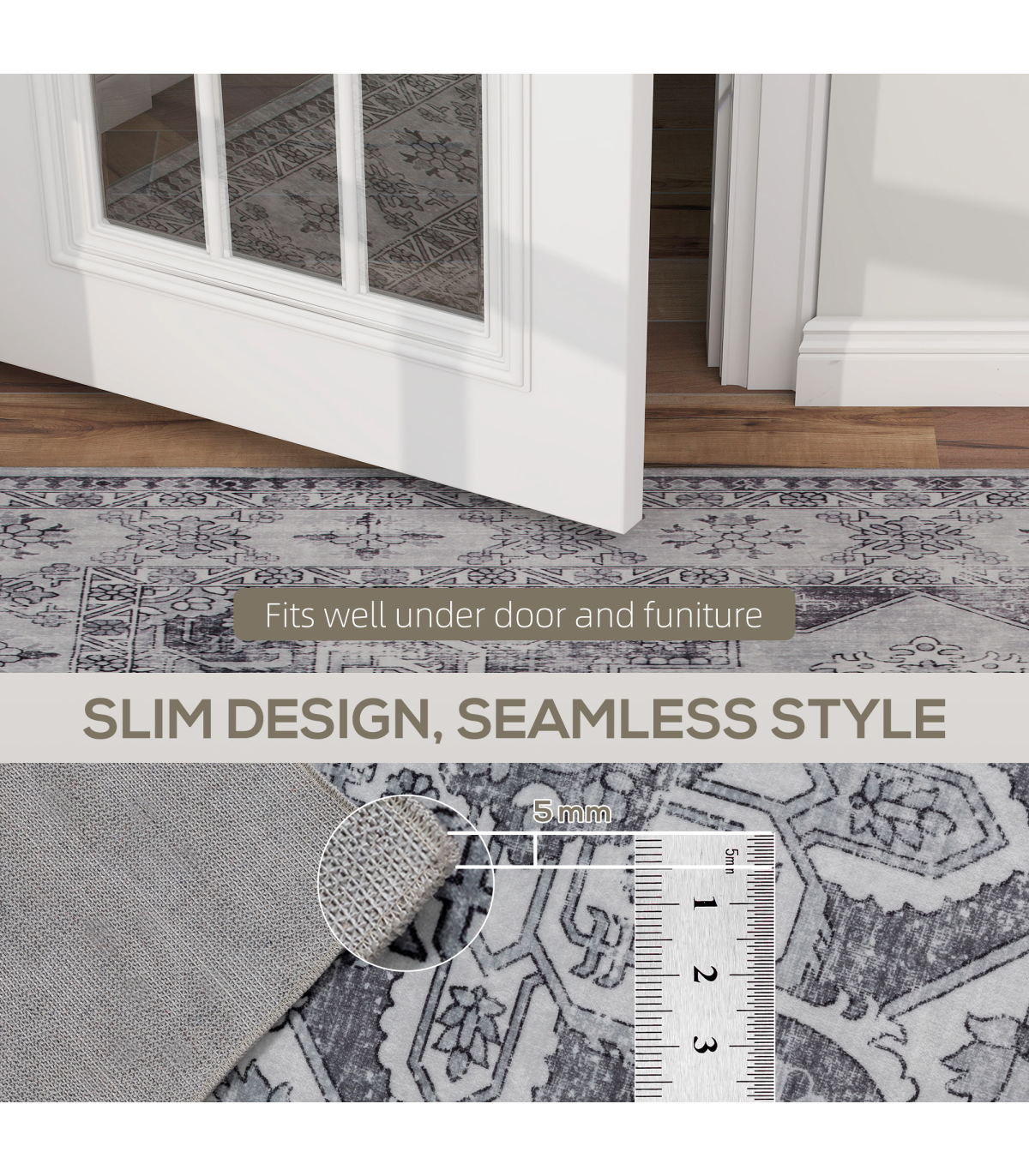 - TPR non-slip backing ensures rug stays securely in place