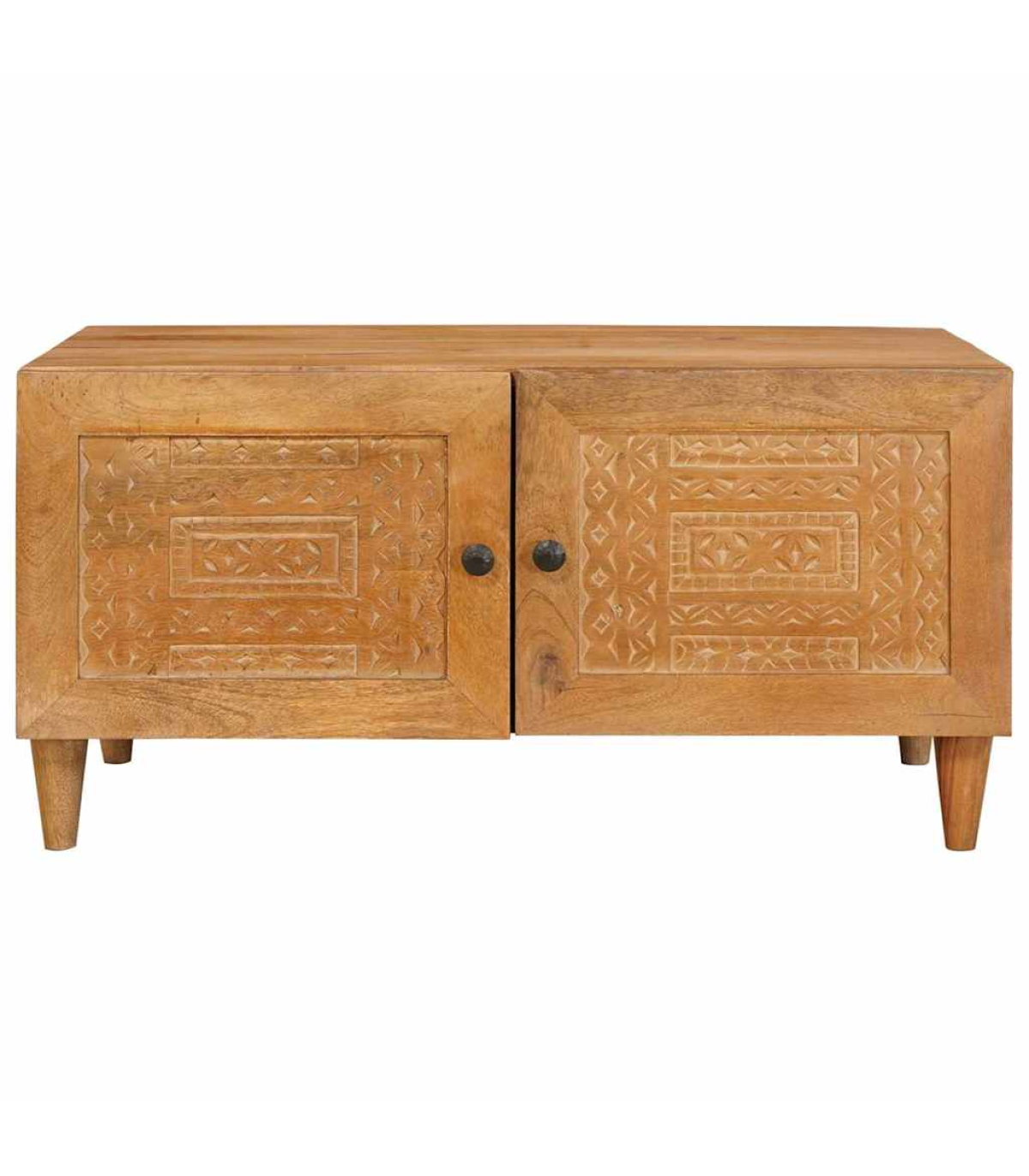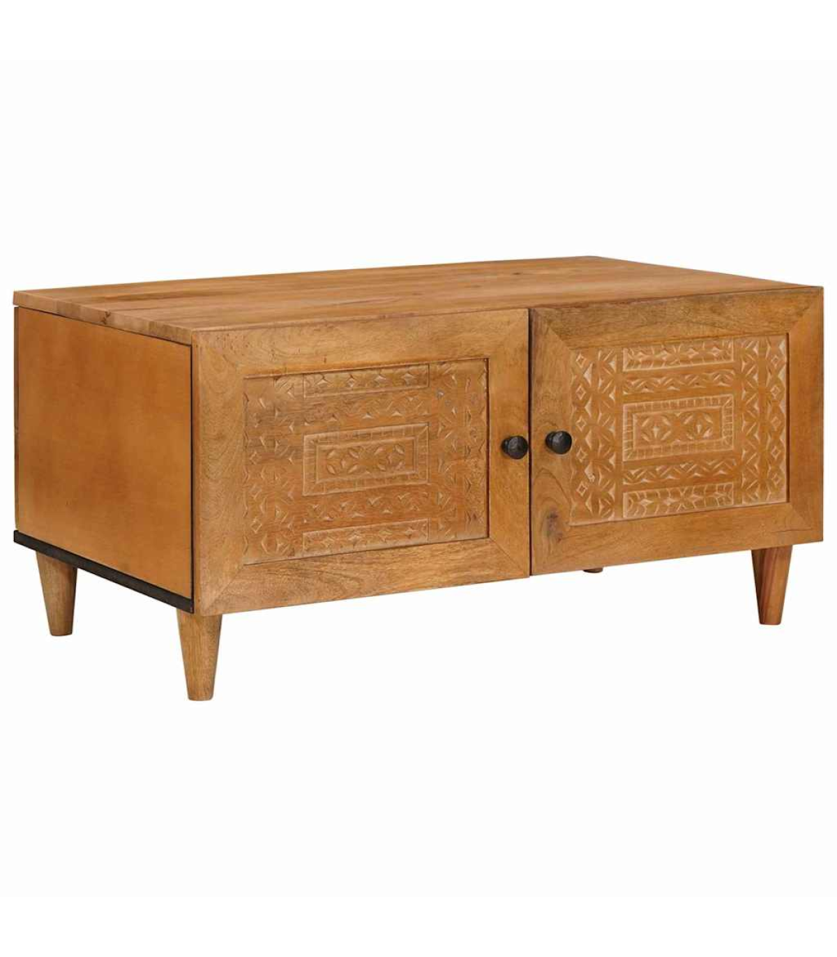 This Solid Wood Coffee Table really gives off a charming traditional look, combining classic elegance with practicality. Made specifically for living rooms, it offers a great mix of style and usefulness. The smooth feel and understated finish add a touch of class, fitting in nicely with any home décor. The tapered legs bring a bit of sophistication, while its strong mango wood build means it’ll last for ages, supporting everything in your living space with ease. Materials: Made from solid mango wood, this coffee table has a rustic charm that looks great in any setting. Its durability makes sure it stays reliable and keeps its good looks over the years. The solid construction resists fading, so it maintains its appeal with regular use. Included Components: With sturdy tapered legs, this table is both stable and stylish. The decorative knobs add to its vintage feel, and a handy compartment offers storage for all sorts of things. It’s not just pretty - it’s super practical too! Features / Function / Design: This table has a door that swings open, giving you easy access to storage that fits right in with your room’s decor. Its solid design promises longevity, making it the perfect mix of practicality and timeless style. The smooth surface encourages everyday use, making it a highlight of your living area. Recommended Uses: Ideal for indoors, especially in the living room, this table lifts the vibe of any classic setting. It’s got plenty of space for drinks, books, or decorations, becoming the centre of your relaxation and social gatherings. Its functionality justifies its place in day-to-day life, standing for both style and purpose. Care & Maintenance: To keep it looking great, just wipe it down with a dry cloth now and then to stop dust building up. Avoid using harsh cleaners to keep its rustic character intact. These simple steps keep it in tip-top shape for years in your home.