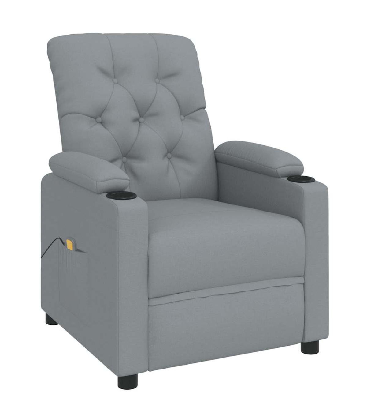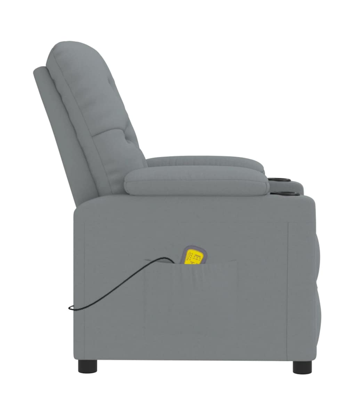 Sit back and drift away in this highly comfortable massage recliner chair! Soft and durable material: Polyester fabric offers a combination of softness, breathability, and durability, ensuring you experience ultimate comfort and cosiness.Sturdy and stable frame: The plywood and metal frame of the armchair ensures sturdiness and stability.Manual reclining function: This reclining chair is specially designed with 3 reclining positions so that you can adjust the backrest and footrest manually as per your comfort.Vibration function: The featured 6 massage points let you experience a better-targeted massage. Additionally, the included hand control allows you to pick different massage programs. The massage function is powered by the USB connector, but the certified 5V USB power source is not included.Comfortable seat experience: The thickly padded seat, backrest, and wide armrests covered in fabric provide a cosy and warm sensation, making you feel embraced while seated. The fabric features a simple and clean look, and is breathable and durable. This appliance can be used by children aged from 8 years and above and persons with reduced physical, sensory or mental capabilities or lack of experience and knowledge if they have been given supervision or instruction concerning use of the appliance in a safe way and understand the hazards involved. Children shall not play with the appliance. Cleaning and user maintenance shall not be made by children without supervision. It must only be supplied at safety extra low voltage corresponding to the marking on the appliance. Plug the USB connector of the unit into the USB jack of the supply. Please note to use only certified DC 5V input. Higher voltage may cause overheating to occur and may result in damage to the device and the potential risk of overheating and fire.