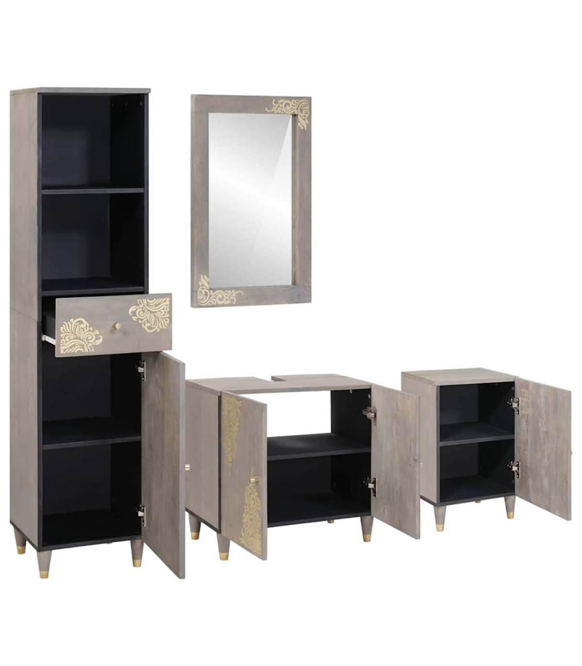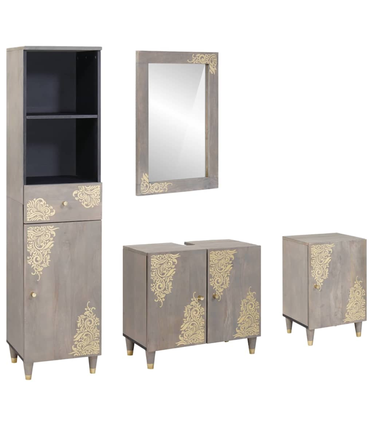 This Bathroom Furniture Set adds a bit of rustic charm to your space. Built to look good and work hard, its warm hues and sturdy build make it a striking feature in your bathroom. With its distinctive rustic style, this set suits both traditional and modern bathrooms, creating a calm feel that’s just right for unwinding. Solid Mango Wood Construction Each piece is made from solid mango wood for lasting durability. Known for its strength and lovely grains, mango wood is a go-to in home furniture. This top-notch material boosts the look and reliability of the set, making your bathroom a peaceful retreat. Mirror and Cabinet Combo This set features a clever mix of a mirror cabinet and handy bathroom storage. The flat mirror gives you a clear reflection, making personal grooming a breeze. Plus, there’s plenty of storage behind the sleek doors to keep your essentials organised and easy to reach. Rustic Charm with a Modern Twist Showcasing natural beauty, this furniture set has a rustic charm with smooth, contrasting finishes and classic design. The solid wood surfaces and chic black square legs fit effortlessly into various décors, blending traditional looks with modern appeal. Space-saving Wall-mounted Design With wall-mounted parts, this furniture set saves floor space while making the most of your bathroom. Its clever design makes navigating smaller areas easy and keeps everything you need right at hand, perfect for compact bathrooms. Easy Care and Setup Keeping this furniture set looking good is super easy—just a quick wipe with a dry cloth does the trick. Setting it up requires two people and a screwdriver, but it’s straightforward. Embrace simple elegance in your home design.