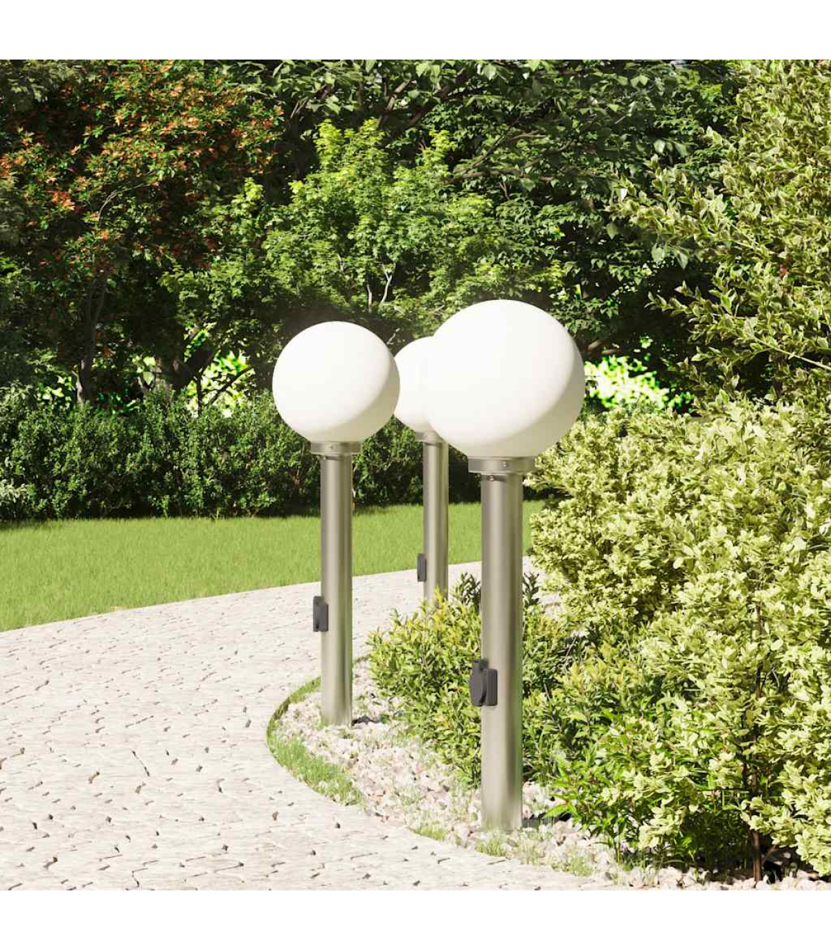 Enhance your outdoor space with these sleek and functional bollard lights! Long-lasting material with IP44 rating: Made from stainless steel with an IP44 rating, this outdoor floor light is robust, weather-resistant, and perfect for long-term outdoor use.Built-in outlet: The garden floor light features a built-in power socket, allowing you to plug in other outdoor appliances or devices with ease. Enjoy easy access to power for your festive lights, phone chargers, or other essentials in your garden.With diffuser: The outdoor standing light comes with a plastic diffuser that helps to protect the light source from elements such as dust, water, and debris, while also providing an even and diffused light output.Versatility: The stylish patio floor light is perfect for various outdoor lighting applications. Use it to illuminate your garden, patio, pathway, driveway, or porch, while also enhancing your outdoor decor. Do not connect this product to any power supply or adapter other than one described in the manual, on the name plate, or specifically recommended by vidaXL. This appliance should not be used by children of 14 years or younger, and persons with reduced physical, sensory or mental capabilities or lack of experience and knowledge concerning use of electronic appliances. Electricity is dangerous. Damage and improper installation, use or alteration (replacement of individual components) can lead to damage to the unit and mains wiring, resulting in electric shock and danger to the user. Do not operate this product in explosive atmospheres, such as in the presence of flammable liquids, gases and dust. Do not switch on the product if the connecting cable or adapter are visible damaged. Never open or insert anything into electrical fittings or equipment. Doing this sort of thing can lead to serious danger to life from electric shock. If the external flexible cable or cord of this luminaire is damaged, it shall be exclusively replaced by the manufacturer or his service agent or a similar qualified person in order to avoid a hazard. Turn off power while installing and maintaining. Make sure the bulbs have cooled down. This product is only to be installed outside arm’s reach. the connection to IPX4 rated socket outlets.