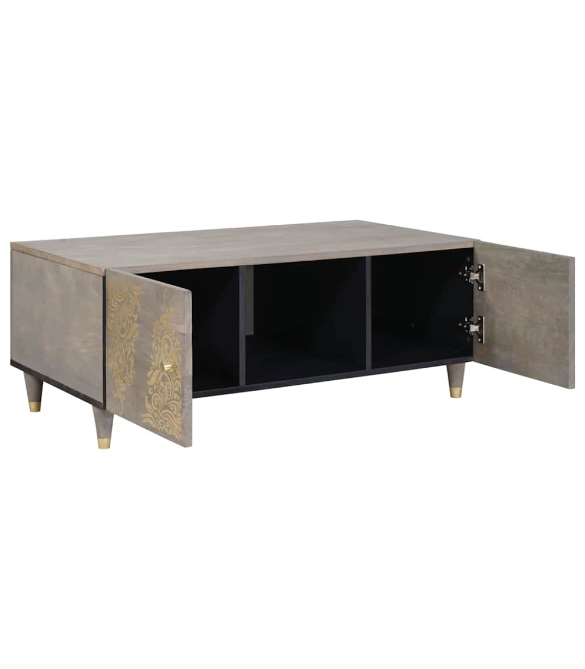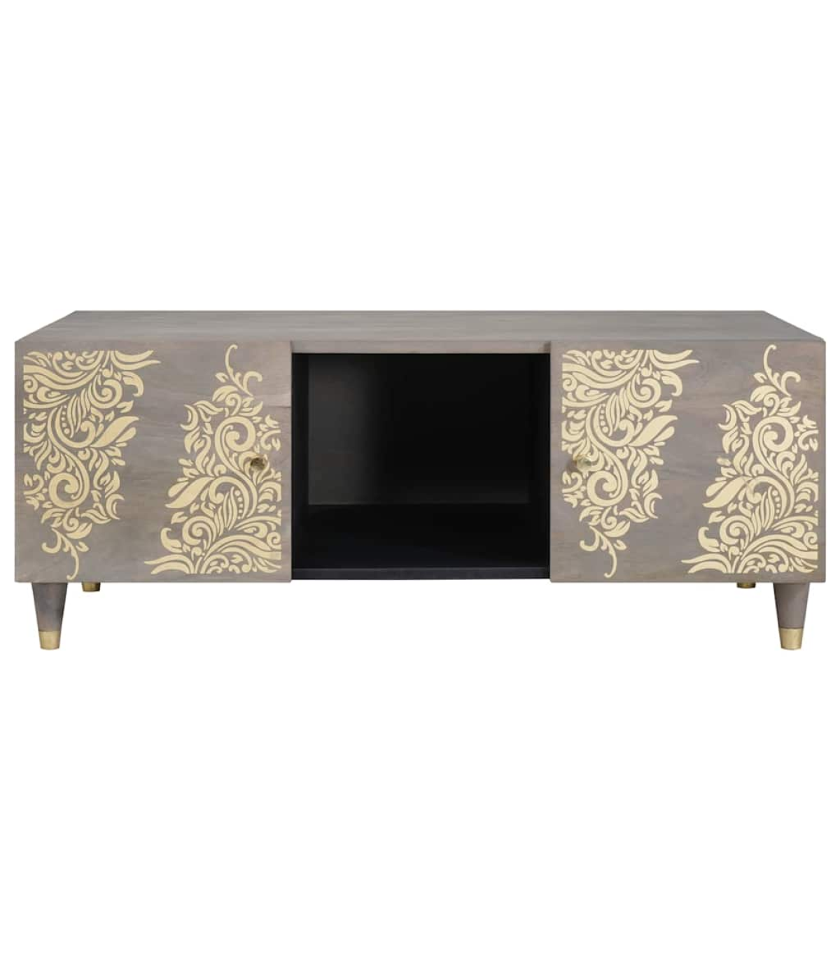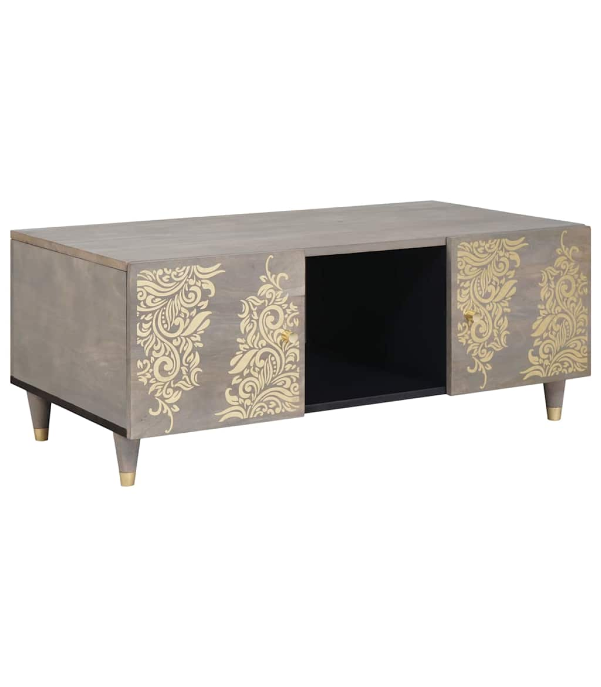 This modern coffee table is a central piece for your living room with its sleek and minimalist vibe. It's crafted for both style and practicality, striking a spot-on balance between modern elegance and day-to-day use. This table is a fab addition to your home, catering to all your daily needs. Matte Finish: The coffee table’s matte finish gives it a subtle elegance, cutting down on glare in bright areas. This finish fits well with loads of different styles, adding a nice texture and feel to your home. Practical Shelving: With its shelves, this table offers a decent spot for stashing magazines, books, or remotes. Each shelf is designed to last and be easy to use, keeping your lounge neat and your stuff within reach. Solid Mango Wood Frame: The sturdy frame made from solid mango wood shows off its strong build. This material is incredibly durable, making sure it holds up well while looking fab for years. Functional Design: The hand-painted front of the coffee table adds a special touch of artistry, mixing function with style. It’s not just a piece of furniture; it’s a real conversation starter! Effortless Upkeep: Keeping the coffee table looking tip-top is easy. Just a quick wipe with a dry cloth will keep it dust-free and shining. This simple care routine means your table will stay a favourite feature in your home for ages.