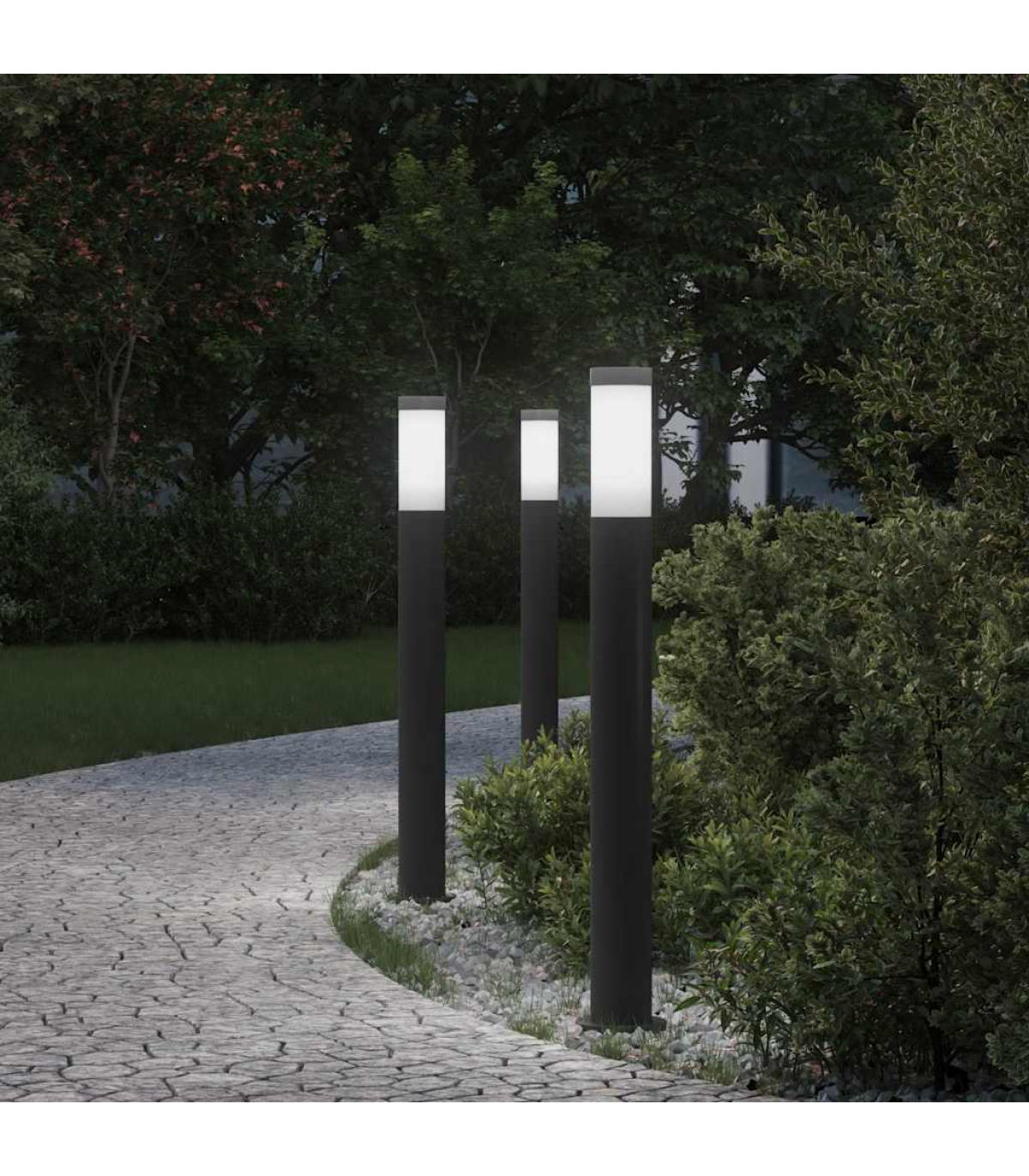 Enhance your outdoor space with these sleek and functional bollard lights! Long-lasting material with IP44 rating: Made from stainless steel with an IP44 rating, this outdoor floor light is robust, weather-resistant, and perfect for long-term outdoor use.With diffuser: The outdoor standing light comes with a plastic diffuser that helps to protect the light source from elements such as dust, water, and debris, while also providing an even and diffused light output.Enhanced safety: The outdoor standing light brightens your outdoor space, improving safety by minimising tripping hazards.Versatility: The stylish patio floor light is perfect for various outdoor lighting applications. Use it to illuminate your garden, patio, pathway, driveway, or porch, while also enhancing your outdoor decor. Do not connect this product to any power supply or adapter other than one described in the manual, on the name plate, or specifically recommended by vidaXL. This appliance should not be used by children of 14 years or younger, and persons with reduced physical, sensory or mental capabilities or lack of experience and knowledge concerning use of electronic appliances. Electricity is dangerous. Damage and improper installation, use or alteration (replacement of individual components) can lead to damage to the unit and mains wiring, resulting in electric shock and danger to the user. Do not operate this product in explosive atmospheres, such as in the presence of flammable liquids, gases and dust. Do not switch on the product if the connecting cable or adapter are visible damaged. Never open or insert anything into electrical fittings or equipment. Doing this sort of thing can lead to serious danger to life from electric shock. If the external flexible cable or cord of this luminaire is damaged, it shall be exclusively replaced by the manufacturer or his service agent or a similar qualified person in order to avoid a hazard. Turn off power while installing and maintaining. Make sure the bulbs have cooled down. This product is only to be installed outside arm’s reach. the connection to IPX4 rated socket outlets.