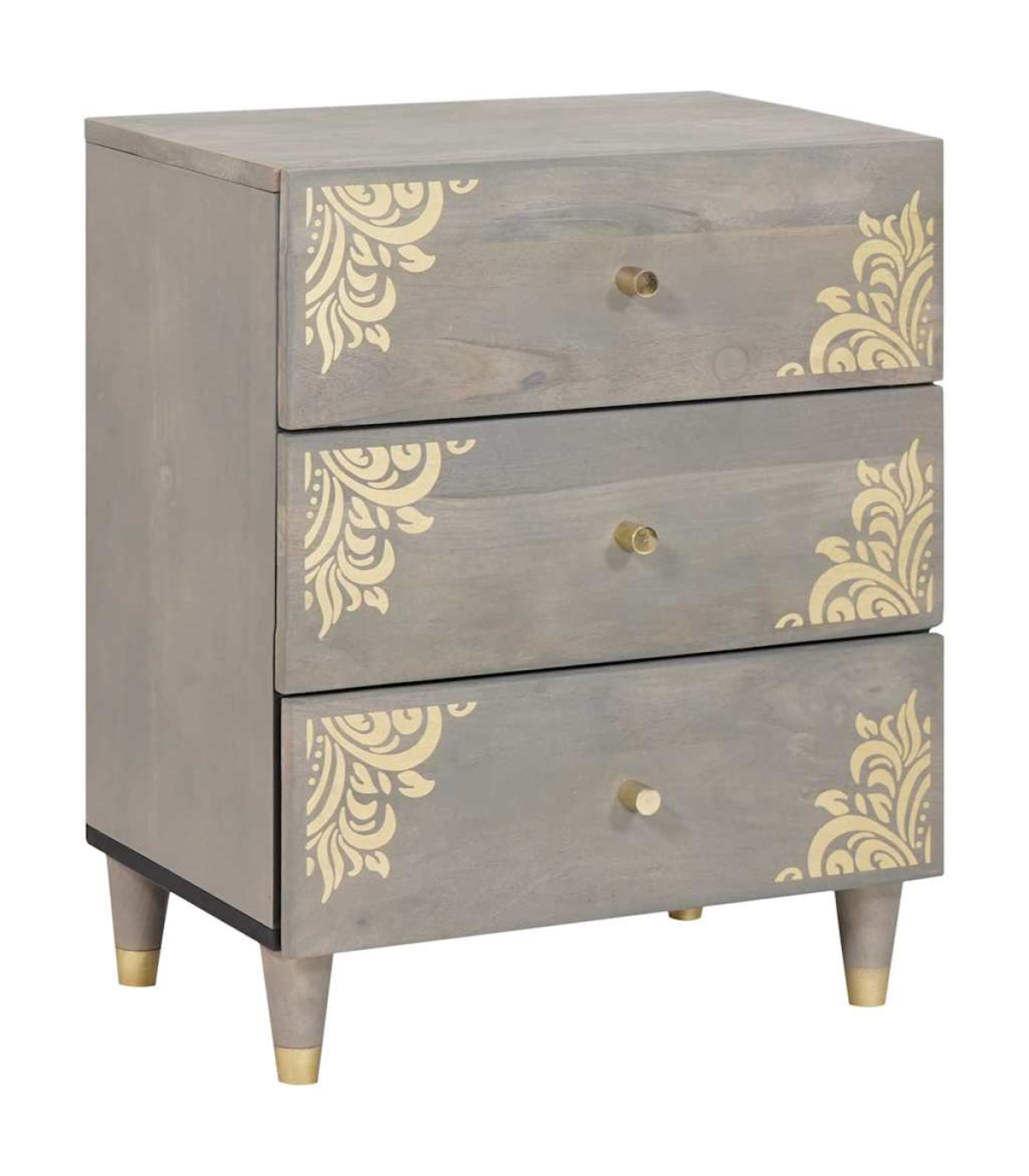 This Modern Bedside Cabinet brings a sleek vibe to any bedroom with its simple yet handy design. It’s perfect for minimalists, boasting a clean look and a matte finish. Great for holding a lamp or stashing away your nighttime essentials, its compact size fits right into various bedroom setups. The textured surface and gold accents give it a modern chic feel, turning this cabinet from just furniture into a statement piece in any house. Sustainable Material: Made with solid mango wood, this bedside cabinet has a lovely natural feel that enhances your bedroom. It's strong and a great choice for furniture, ensuring it lasts for years while being eco-friendly. Functional Design: The traditional drawer with gold knobs lets you easily grab your stuff. It fits neatly beside any bed, perfect for your night-time bits like books or personal items, helping keep your bedroom tidy. Artistic Finish: With hand-painted fronts, each cabinet shows off unique craftsmanship. This artistic flair adds character and personality to your furniture collection, making it a standout piece in modern décor. Durable Build: The solid mango wood and tapered legs ensure it can handle daily use without losing its charm. This means it's a lasting investment in both style and function. Easy Maintenance: Just a quick wipe with a dry cloth keeps this cabinet looking fresh and tidy, so you can spend less time cleaning and more time enjoying your space.