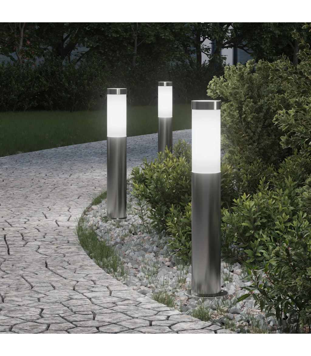 Enhance your outdoor space with these sleek and functional bollard lights! Long-lasting material with IP44 rating: Made from stainless steel with an IP44 rating, this outdoor floor light is robust, weather-resistant, and perfect for long-term outdoor use.With diffuser: The outdoor standing light comes with a plastic diffuser that helps to protect the light source from elements such as dust, water, and debris, while also providing an even and diffused light output.Enhanced safety: The outdoor standing light brightens your outdoor space, improving safety by minimising tripping hazards.Versatility: The stylish patio floor light is perfect for various outdoor lighting applications. Use it to illuminate your garden, patio, pathway, driveway, or porch, while also enhancing your outdoor decor. Do not connect this product to any power supply or adapter other than one described in the manual, on the name plate, or specifically recommended by vidaXL. This appliance should not be used by children of 14 years or younger, and persons with reduced physical, sensory or mental capabilities or lack of experience and knowledge concerning use of electronic appliances. Electricity is dangerous. Damage and improper installation, use or alteration (replacement of individual components) can lead to damage to the unit and mains wiring, resulting in electric shock and danger to the user. Do not operate this product in explosive atmospheres, such as in the presence of flammable liquids, gases and dust. Do not switch on the product if the connecting cable or adapter are visible damaged. Never open or insert anything into electrical fittings or equipment. Doing this sort of thing can lead to serious danger to life from electric shock. If the external flexible cable or cord of this luminaire is damaged, it shall be exclusively replaced by the manufacturer or his service agent or a similar qualified person in order to avoid a hazard. Turn off power while installing and maintaining. Make sure the bulbs have cooled down. This product is only to be installed outside arm’s reach. the connection to IPX4 rated socket outlets