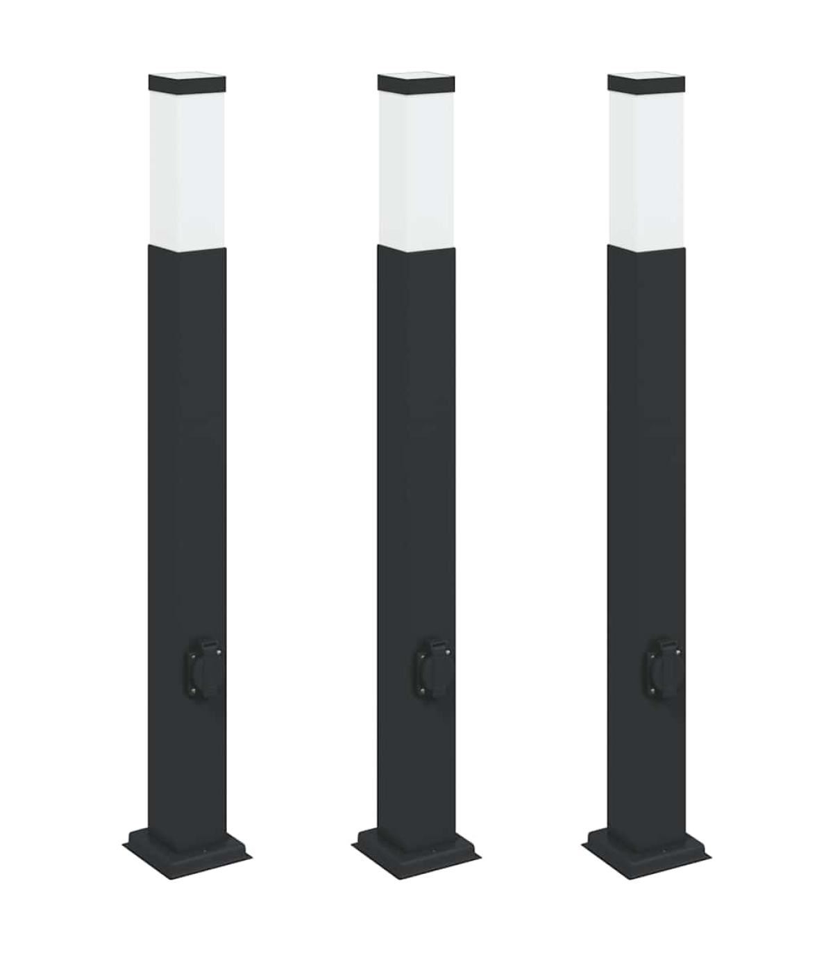 Enhance your outdoor space with these sleek and functional bollard lights! Long-lasting material with IP44 rating: Made from stainless steel with an IP44 rating, this outdoor floor light is robust, weather-resistant, and perfect for long-term outdoor use.Built-in outlet: The garden floor light features a built-in power socket, allowing you to plug in other outdoor appliances or devices with ease. Enjoy easy access to power for your festive lights, phone chargers, or other essentials in your garden.With diffuser: The outdoor standing light comes with a plastic diffuser that helps to protect the light source from elements such as dust, water, and debris, while also providing an even and diffused light output.Versatility: The stylish patio floor light is perfect for various outdoor lighting applications. Use it to illuminate your garden, patio, pathway, driveway, or porch, while also enhancing your outdoor decor. Do not connect this product to any power supply or adapter other than one described in the manual, on the name plate, or specifically recommended by vidaXL. This appliance should not be used by children of 14 years or younger, and persons with reduced physical, sensory or mental capabilities or lack of experience and knowledge concerning use of electronic appliances. Electricity is dangerous. Damage and improper installation, use or alteration (replacement of individual components) can lead to damage to the unit and mains wiring, resulting in electric shock and danger to the user. Do not operate this product in explosive atmospheres, such as in the presence of flammable liquids, gases and dust. Do not switch on the product if the connecting cable or adapter are visible damaged. Never open or insert anything into electrical fittings or equipment. Doing this sort of thing can lead to serious danger to life from electric shock. If the external flexible cable or cord of this luminaire is damaged, it shall be exclusively replaced by the manufacturer or his service agent or a similar qualified person in order to avoid a hazard. Turn off power while installing and maintaining. Make sure the bulbs have cooled down. This product is only to be installed outside arm’s reach. the connection to IPX4 rated socket outlets