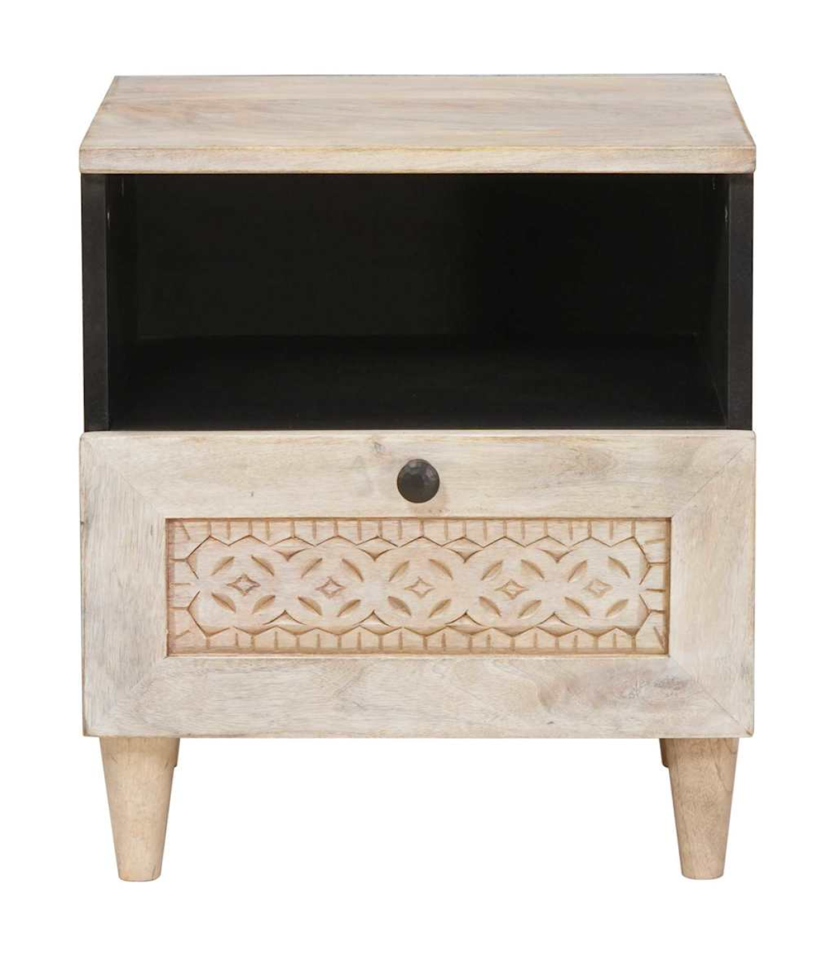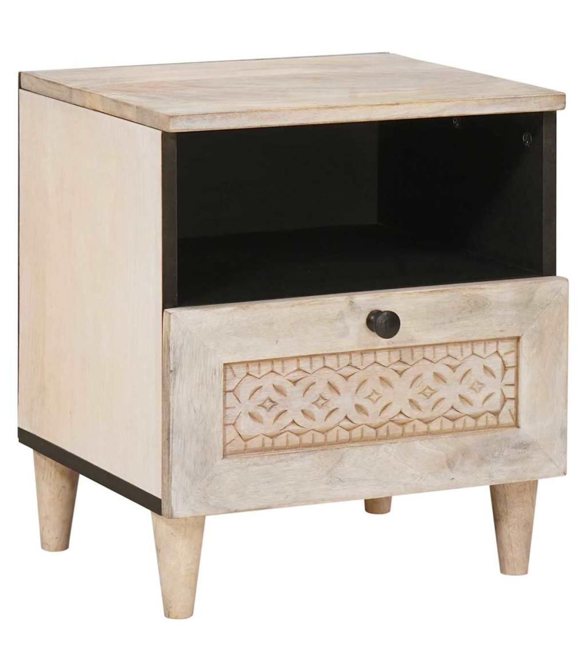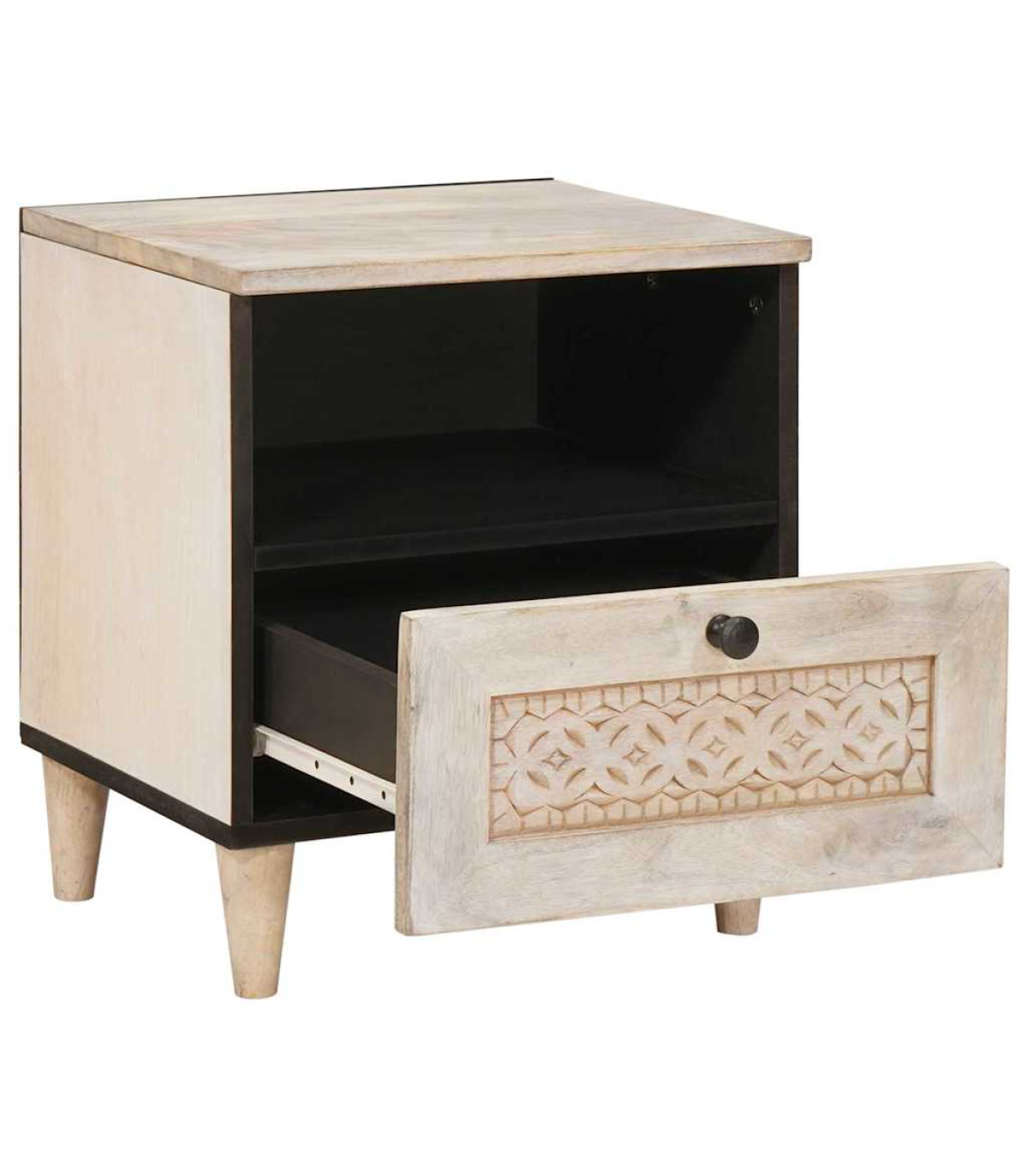 This bedside table's the perfect combo of old-school charm and smart functionality, ideal for sprucing up your bedroom or living room. With a smooth, rectangular surface and matte finish, it adds a classy touch to any space. Its compact size is just right for a snug corner, bringing a warm, rustic feel to the room. Made from solid wood, it’s a reliable spot for your night-time essentials, whether it’s your alarm clock or a reading light—definitely a must-have! Solid Mango Wood Material This table’s crafted from top-notch mango wood, giving it strength and a lovely rustic look. Known for its durability, mango wood keeps this piece looking great while handling daily use. Plus, the natural grain variations make each table unique, adding character to your space. It’s solid enough to hold all your bedside must-haves. Built-In Shelf and Drawer For handy storage, this table comes with a custom shelf and a drawer. You’ll have plenty of space to organise books and personal bits and bobs, keeping your night-time necessities within easy reach. The shelf fits right into the design, enhancing the table’s sleek look while maximising functionality in tight spots. Matte Finish The non-reflective matte finish gives it a classy vibe, mixing traditional style with modern trends. This finish not only looks good but also helps it stand up to wear and tear. It fits in well with different decor styles, from minimalist to classic—making it a timeless piece for any room. Traditional Decor Aesthetic The table features classic lines and great attention to detail, showcasing a traditional style that enhances the atmosphere of any bedroom or living space. Its presence adds warmth and comfort, acting as a sophisticated focal point that pairs well with other furniture. Whether in your bedroom or living area, it fits right in with various interior themes. Care Instructions To keep it looking great for years, just give this bedside table a wipe with a dry cloth. Avoid harsh chemicals or abrasives to protect its finish. It doesn’t take much to keep it looking stylish and ready for your everyday needs at home.