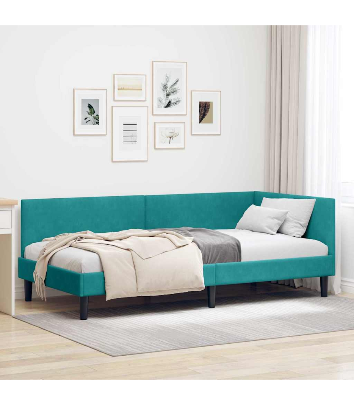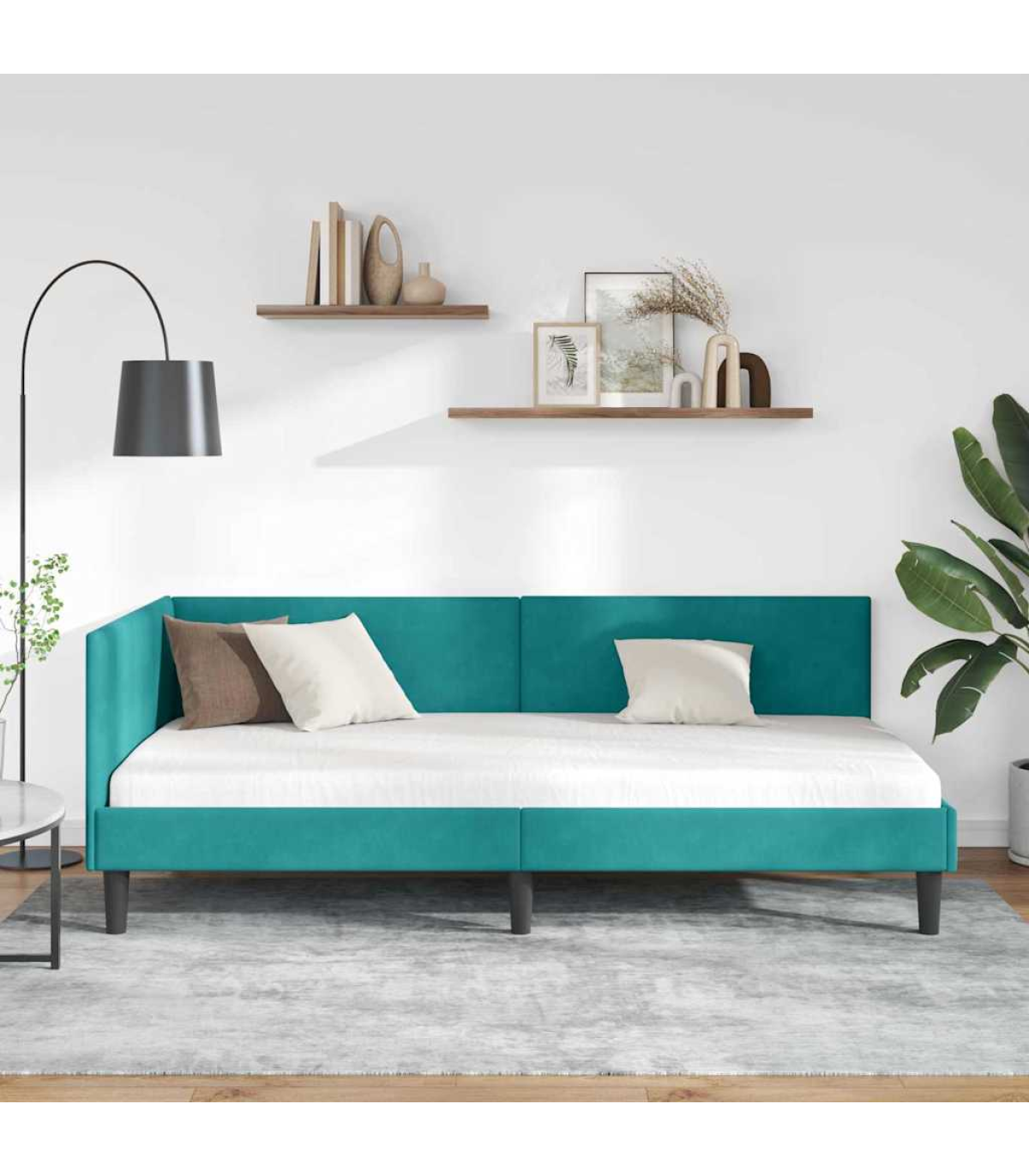 vidaXL Corner Bed Frame Other with Headboard Turquoise 90 x 190 cm