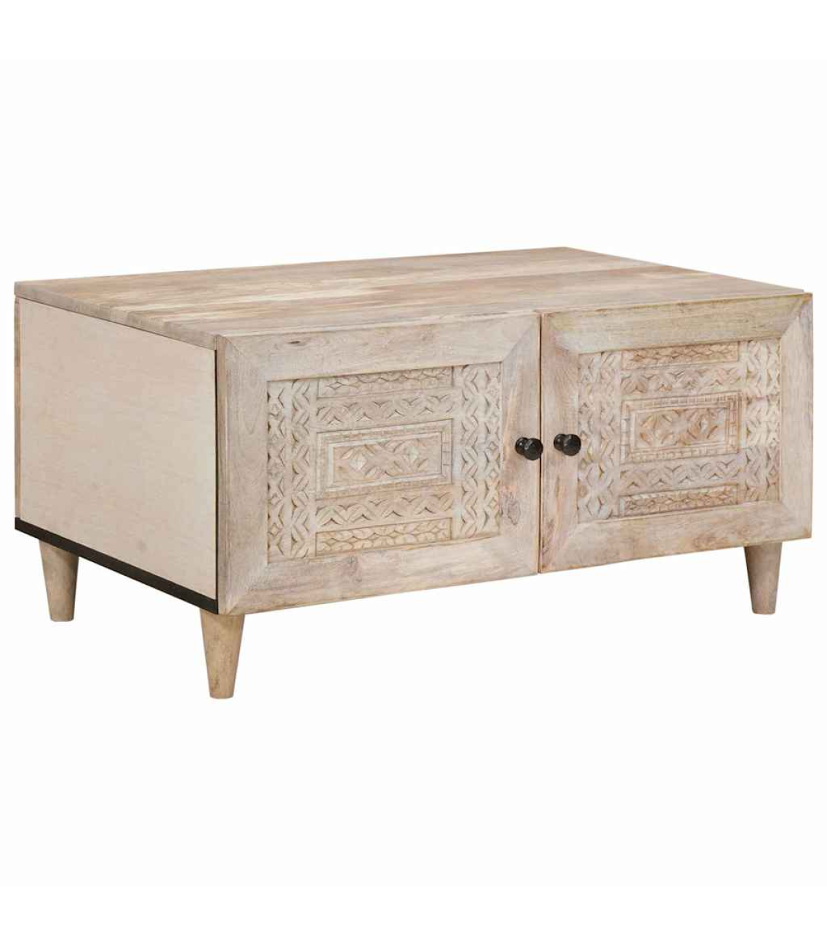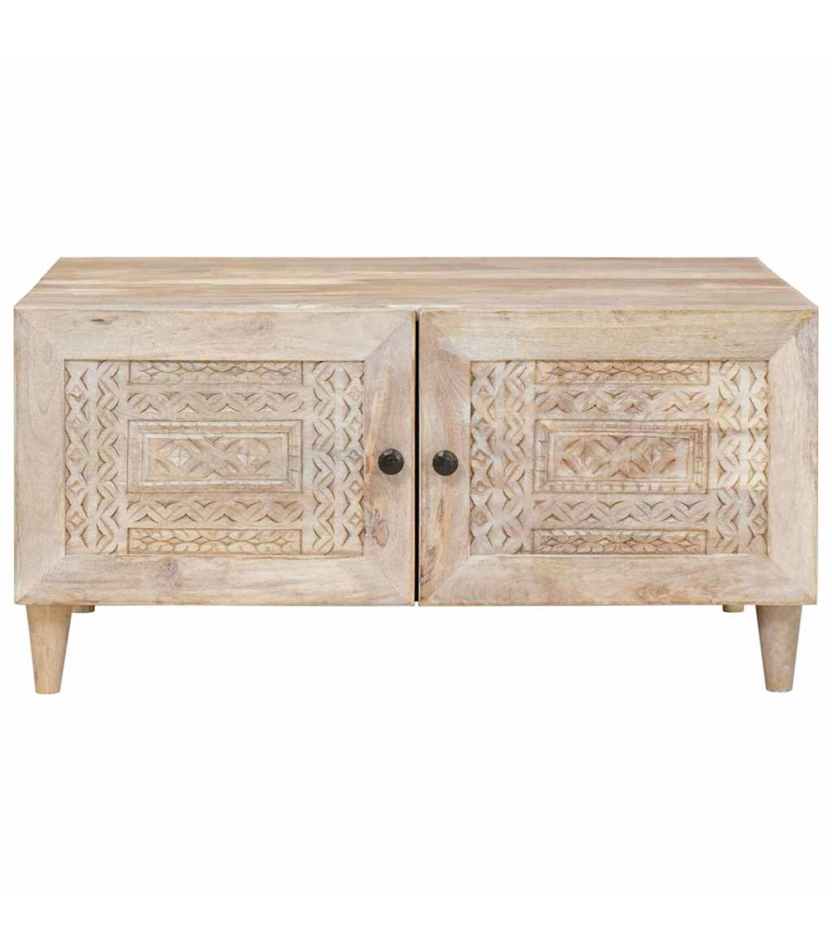 This Solid Wood Coffee Table really gives off a charming traditional look, combining classic elegance with practicality. Made specifically for living rooms, it offers a great mix of style and usefulness. The smooth feel and understated finish add a touch of class, fitting in nicely with any home décor. The tapered legs bring a bit of sophistication, while its strong mango wood build means it’ll last for ages, supporting everything in your living space with ease. Materials: Made from solid mango wood, this coffee table has a rustic charm that looks great in any setting. Its durability makes sure it stays reliable and keeps its good looks over the years. The solid construction resists fading, so it maintains its appeal with regular use. Included Components: With sturdy tapered legs, this table is both stable and stylish. The decorative knobs add to its vintage feel, and a handy compartment offers storage for all sorts of things. It’s not just pretty - it’s super practical too! Features / Function / Design: This table has a door that swings open, giving you easy access to storage that fits right in with your room’s decor. Its solid design promises longevity, making it the perfect mix of practicality and timeless style. The smooth surface encourages everyday use, making it a highlight of your living area. Recommended Uses: Ideal for indoors, especially in the living room, this table lifts the vibe of any classic setting. It’s got plenty of space for drinks, books, or decorations, becoming the centre of your relaxation and social gatherings. Its functionality justifies its place in day-to-day life, standing for both style and purpose. Care & Maintenance: To keep it looking great, just wipe it down with a dry cloth now and then to stop dust building up. Avoid using harsh cleaners to keep its rustic character intact. These simple steps keep it in tip-top shape for years in your home.