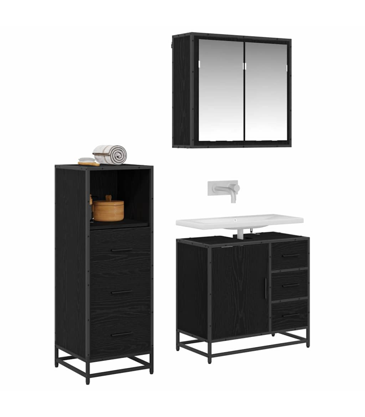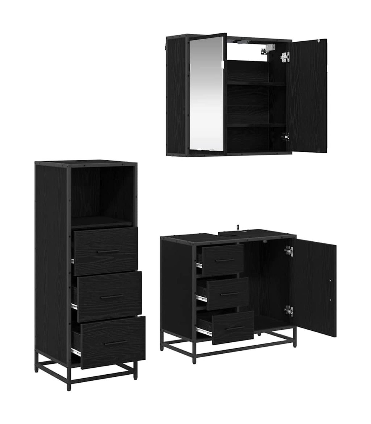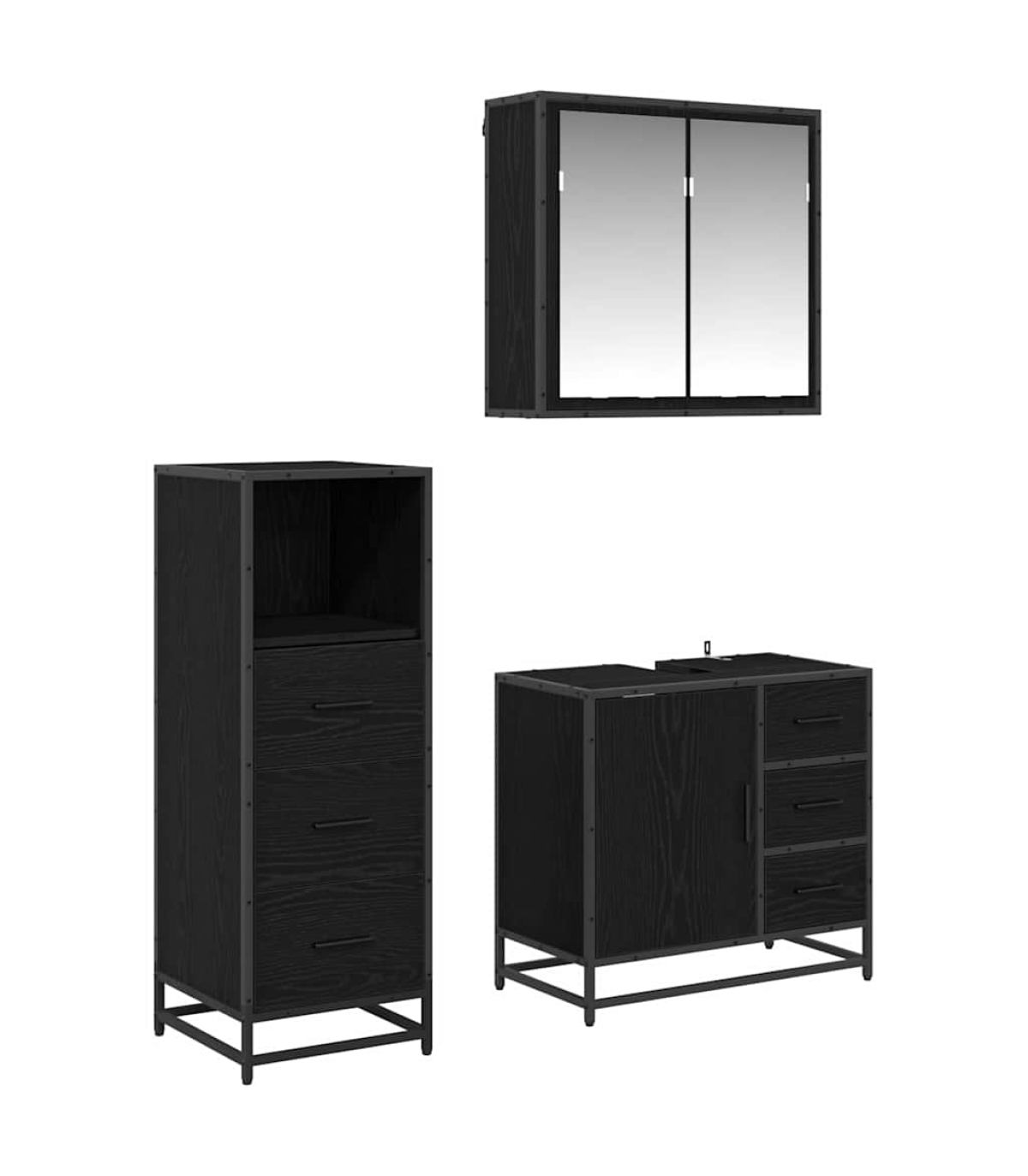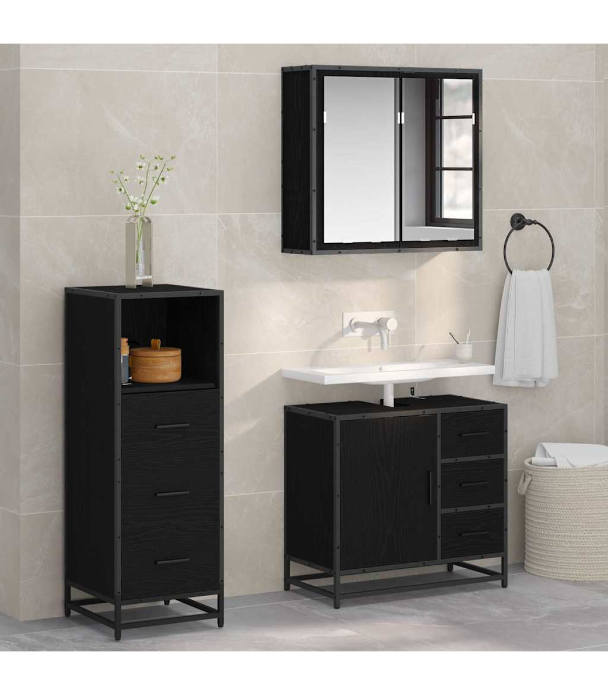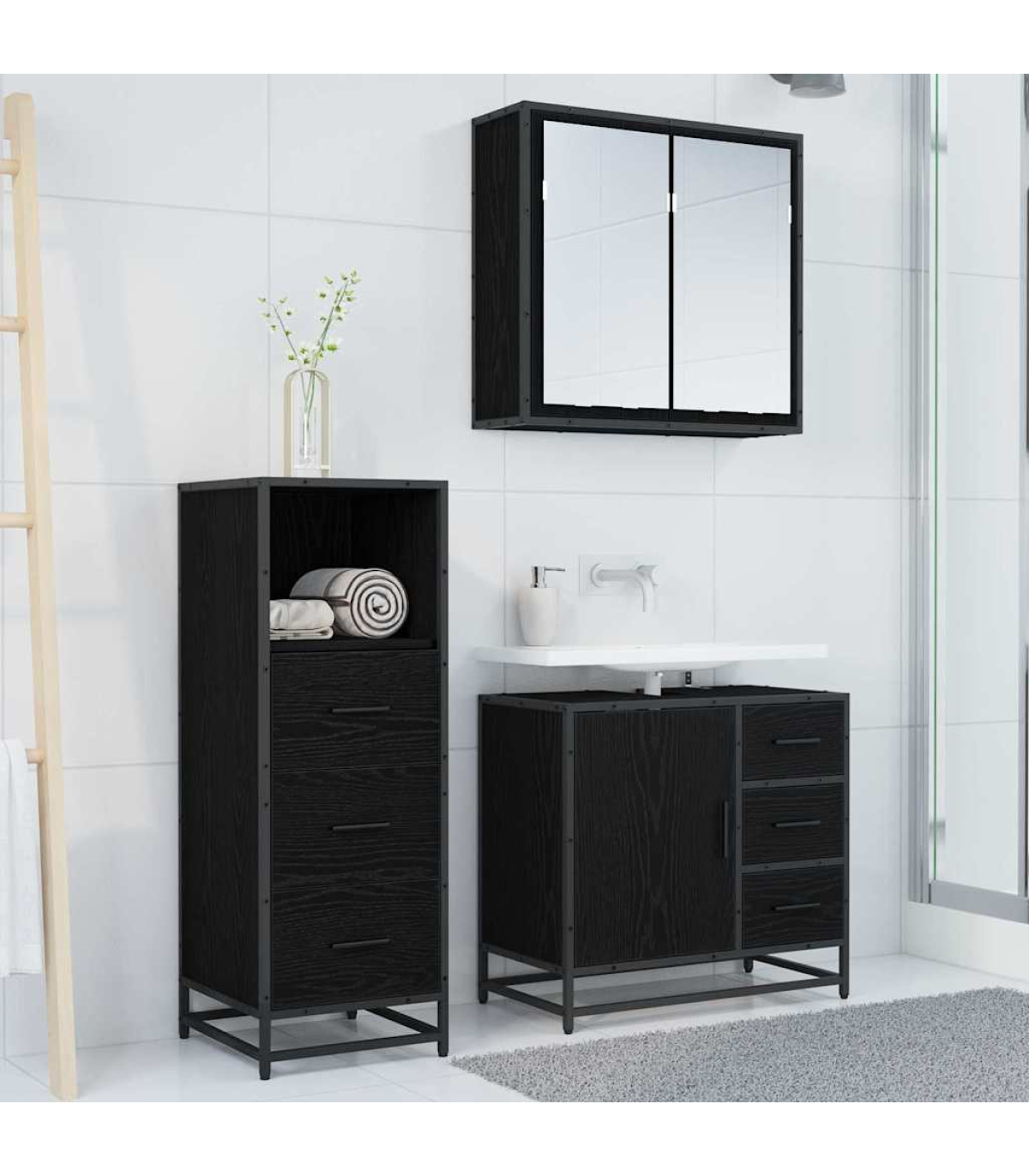 Say hello to your new favourite Bathroom Storage Set with Mirror! It’s all about blending style with practicality while bringing that industrial chic vibe into your bathroom. With its sleek shape and tough build, it not only gets the job done but also boosts the look of your bathroom. Designed to suit everyone, it fits right into various settings while keeping your space organised. The overall feel is fresh yet timeless, perfect for fans of urban design. Materials: Made from engineered wood and steel, this set is sturdy and stylish. The engineered wood is robust, and the powder-coated steel adds a solid touch, making it eye-catching and built to last. Included Components: You’ve got a multifunctional sink cabinet, a mirrored cabinet, and an extra cabinet in this set, all aimed at boosting your storage. Each one has shelves built in for tidy organisation. The hinge doors and bar handles ensure easy access, keeping things neat. Features / Function / Design: In a rectangular shape, this set mixes style and usefulness beautifully. The matte finish gives it a chic, non-reflective look that’s perfect for those who want to keep things sophisticated without showing off too much. With extra compartments, you get great functionality. Recommended Uses: Ideal for small bathrooms, this set helps organise without cluttering the space. Its industrial flair matches urban lofts perfectly, adding character to your décor. It’s great for streamlining your morning routine and making everyday tasks a doddle. Care & Maintenance: For the best upkeep, put this set together as per the instructions and anchor the taller bits to the wall. Skip the harsh cleaners to keep it looking fresh and stylish, making sure your bathroom stays a chic space.