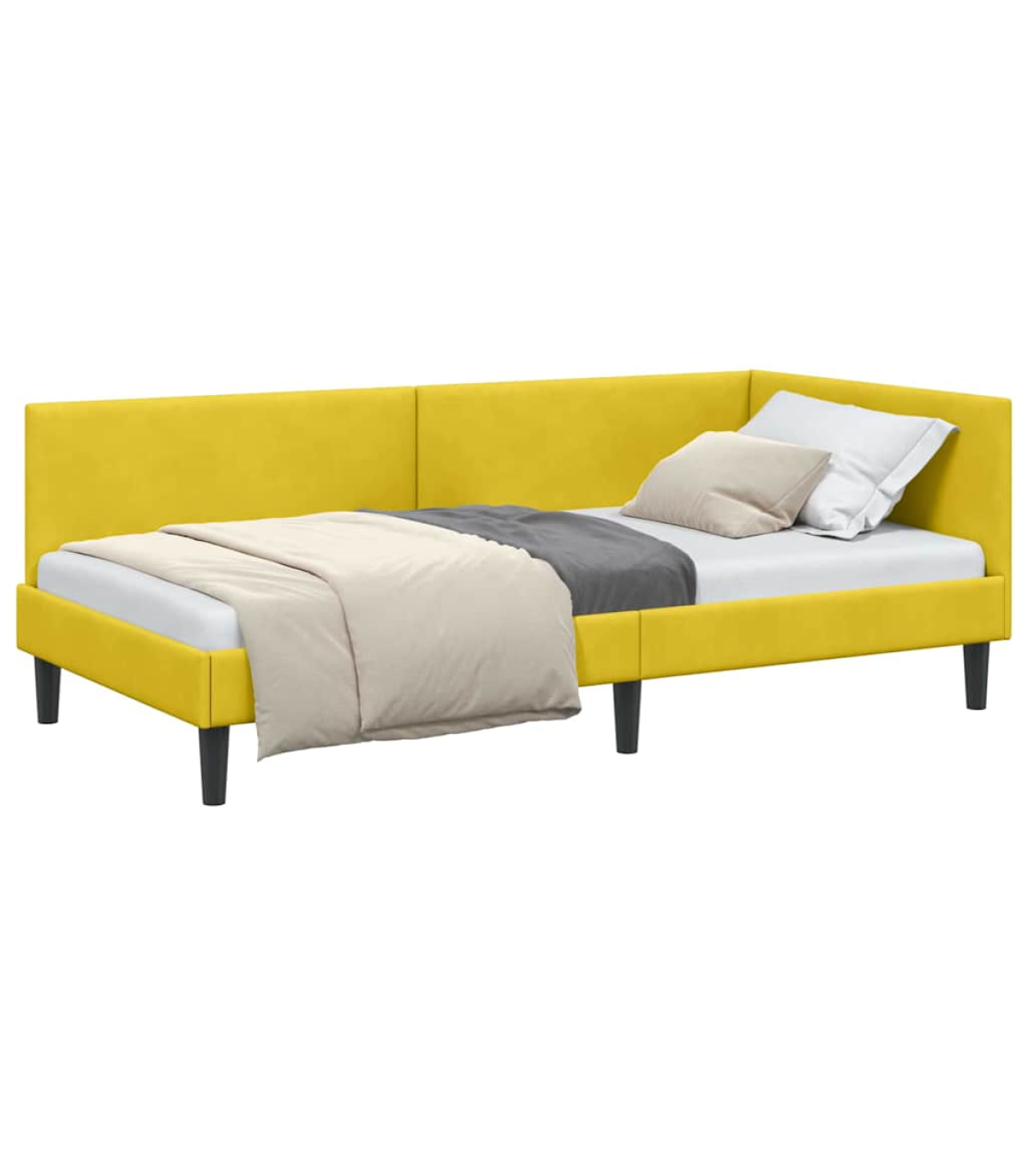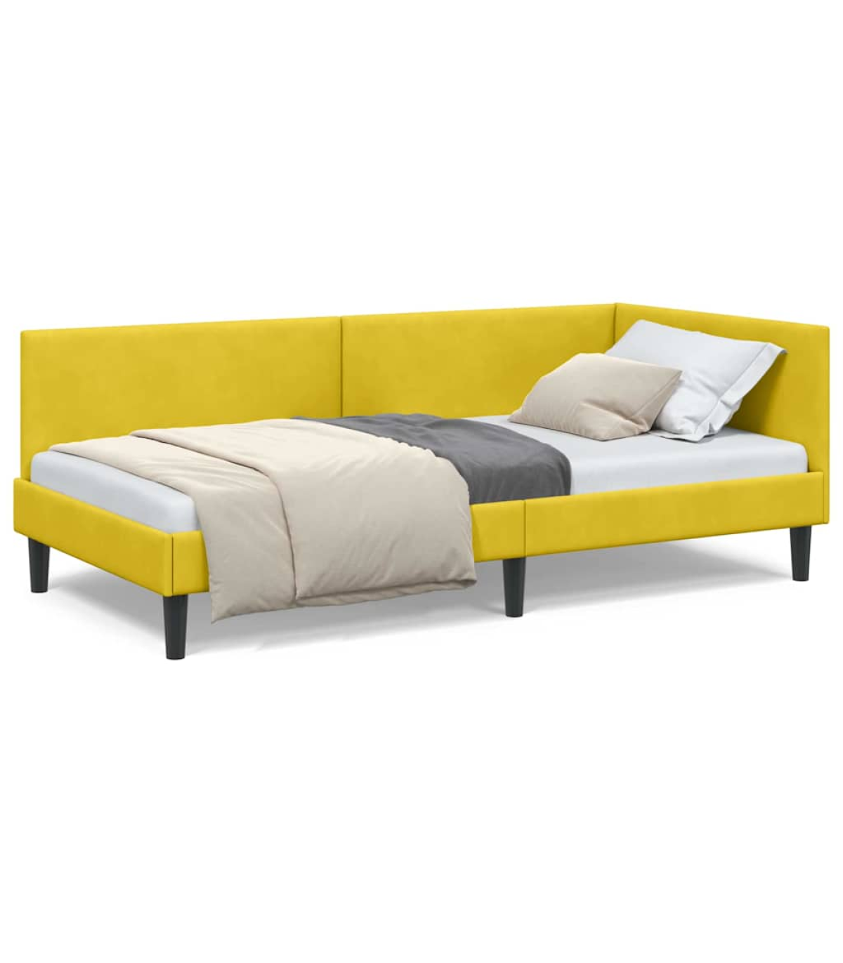 vidaXL Corner Bed Frame Yellow 90 x 200 cm Velvet and Engineered wood