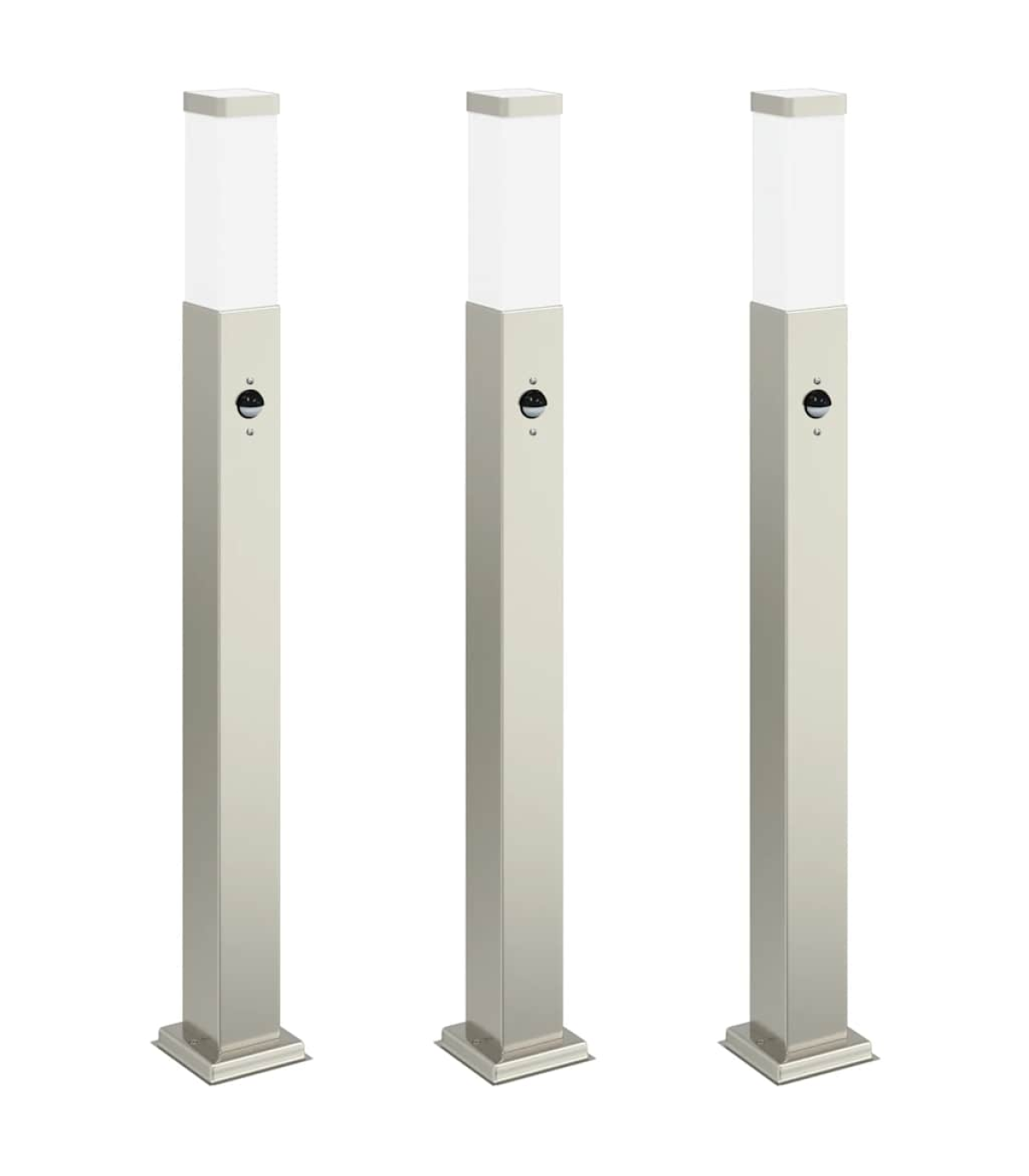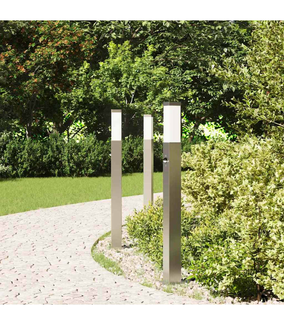 Enhance your outdoor space with these sleek and functional bollard lights! Long-lasting material with IP44 rating: Made from stainless steel with an IP44 rating, this outdoor floor light is robust, weather-resistant, and perfect for long-term outdoor use.PIR motion sensor: The outdoor standing lamp is equipped with a built-in PIR (passive infrared) motion sensor, boasting a 110° detection angle and an effective range of 8-12 meters. You can adjust both the brightness sensitivity and the lighting duration, selecting a relay time between 10 seconds and 5 minutes. The light automatically turns on when motion is detected.With diffuser: The outdoor standing light comes with a plastic diffuser that helps to protect the light source from elements such as dust, water, and debris, while also providing an even and diffused light output.Versatility: The stylish patio floor light is perfect for various outdoor lighting applications. Use it to illuminate your garden, patio, pathway, driveway, or porch, while also enhancing your outdoor decor. Do not connect this product to any power supply or adapter other than one described in the manual, on the name plate, or specifically recommended by vidaXL. This appliance should not be used by children of 14 years or younger, and persons with reduced physical, sensory or mental capabilities or lack of experience and knowledge concerning use of electronic appliances. Electricity is dangerous. Damage and improper installation, use or alteration (replacement of individual components) can lead to damage to the unit and mains wiring, resulting in electric shock and danger to the user. Do not operate this product in explosive atmospheres, such as in the presence of flammable liquids, gases and dust. Do not switch on the product if the connecting cable or adapter are visible damaged. Never open or insert anything into electrical fittings or equipment. Doing this sort of thing can lead to serious danger to life from electric shock. If the external flexible cable or cord of this luminaire is damaged, it shall be exclusively replaced by the manufacturer or his service agent or a similar qualified person in order to avoid a hazard. Turn off power while installing and maintaining. Make sure the bulbs have cooled down. This product is only to be installed outside arm’s reach. the connection to IPX4 rated socket outlets