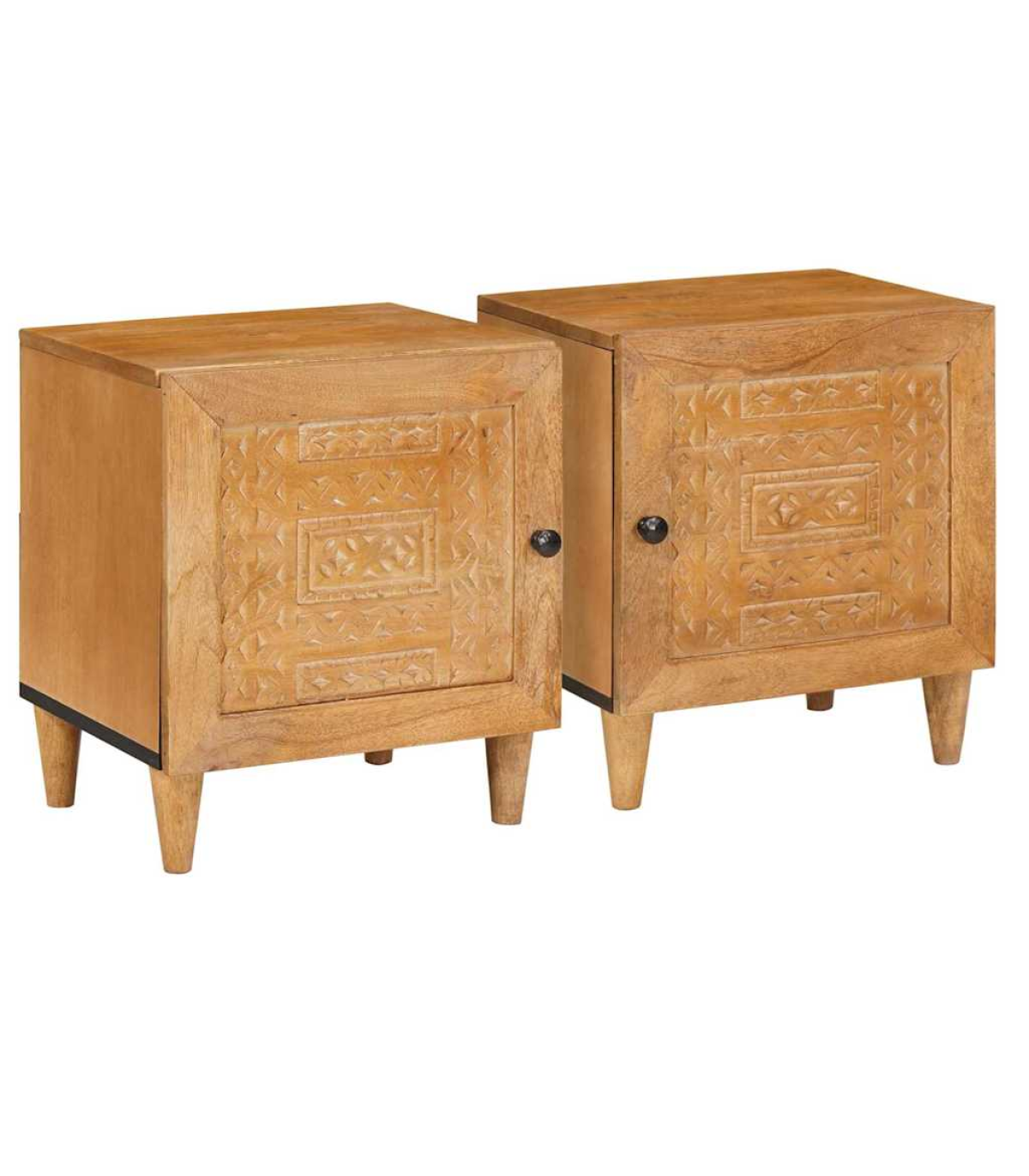 This rustic bedside table is a fab mix of practicality and style, perfect for your living room or bedroom. Made from solid mango wood, it has a warm, textured finish that adds loads of character to your space. Its compact rectangular shape fits snugly next to your bed, making it a handy spot for your lamp, alarm clock, or personal bits and bobs. The matte finished frame adds an elegant touch, and its simple style complements all sorts of interior decor. Materials: The table is made from durable solid mango wood, featuring a textured surface that showcases the natural grain and rich tones. Its rugged beauty fits right in with the rustic vibe, making it a strong and stylish piece for any room. Included Components: There’s a single storage compartment covered by a hinged door with a matte finish knob, offering practical space to stash your stuff. The back is unfinished for wall placement, ensuring strength and stability. The tapered legs add a nice silhouette while providing solid support. Features / Function / Design: With its rustic style, this table isn’t just a storage solution; it brings a cozy, natural vibe to your room. Its sturdy frame, hinge door, and practical size make it perfect for storing your night-time essentials in small spaces. Recommended Uses: Great for bedrooms or living rooms, this compact table can easily serve as a nightstand or a side table next to sofas and armchairs, blending functionality with style. Its versatility suits different room decors, adding charm wherever it sits. Care & Maintenance: To keep the table's rustic charm, just wipe it down with a dry cloth to dust it off. Avoid harsh cleaners or abrasives that could damage the surface, ensuring it stays beautiful for the long haul.
