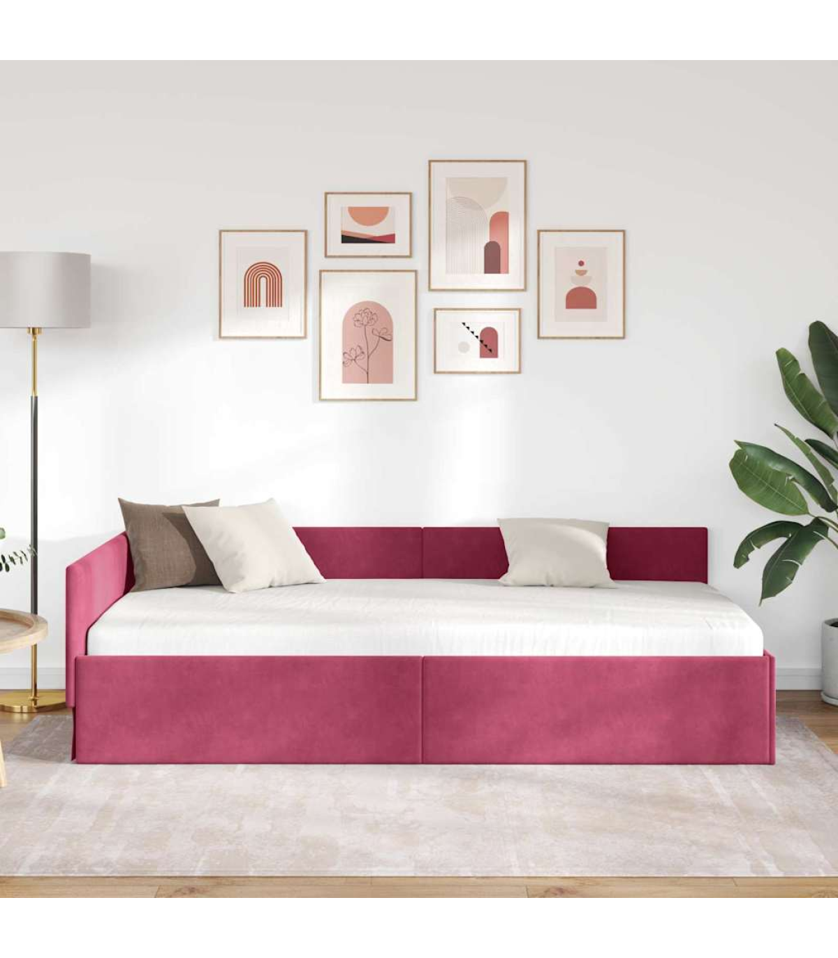 vidaXL Corner Bed Frame Other with Headboard Wine red 100 x 200 cm