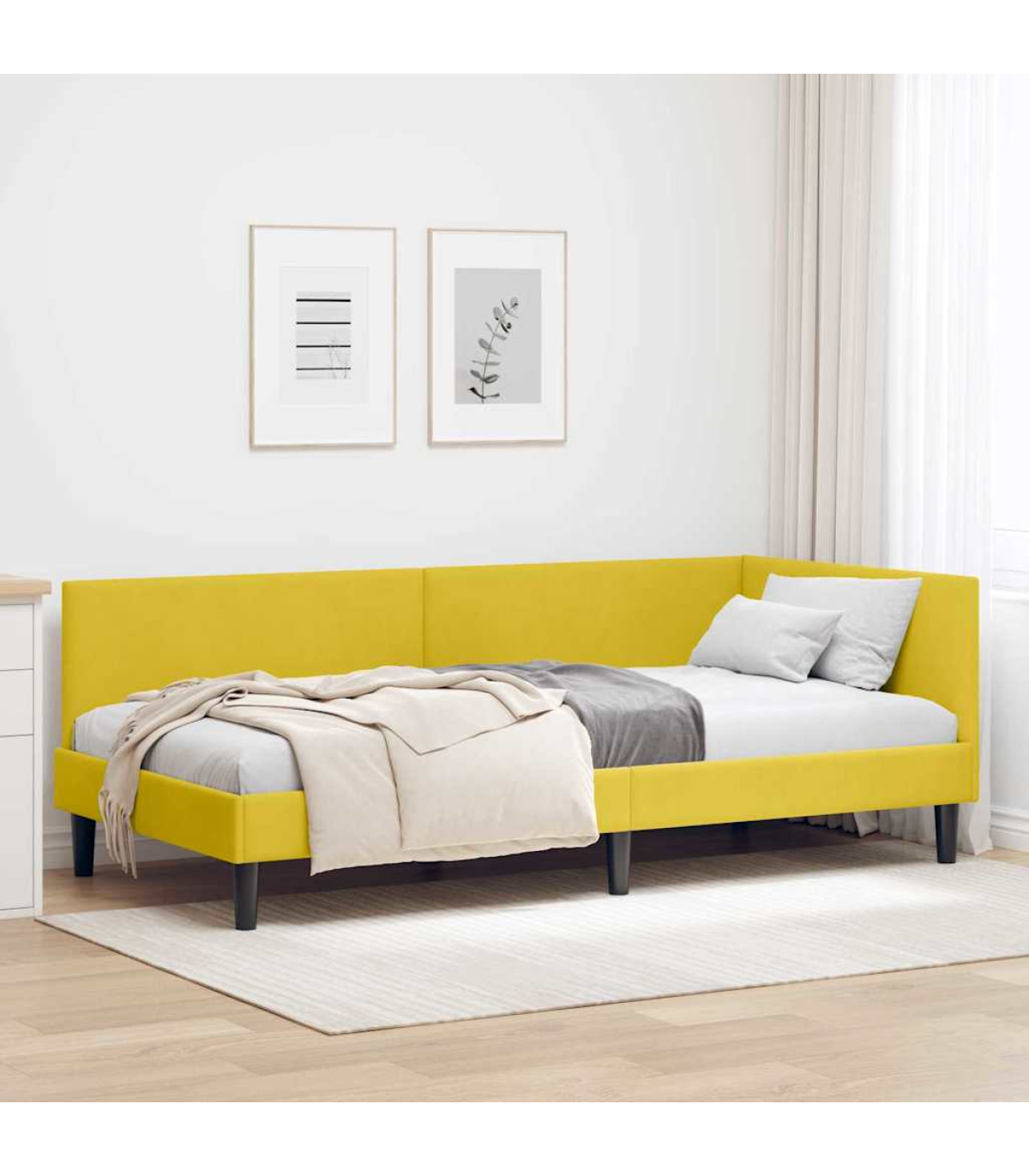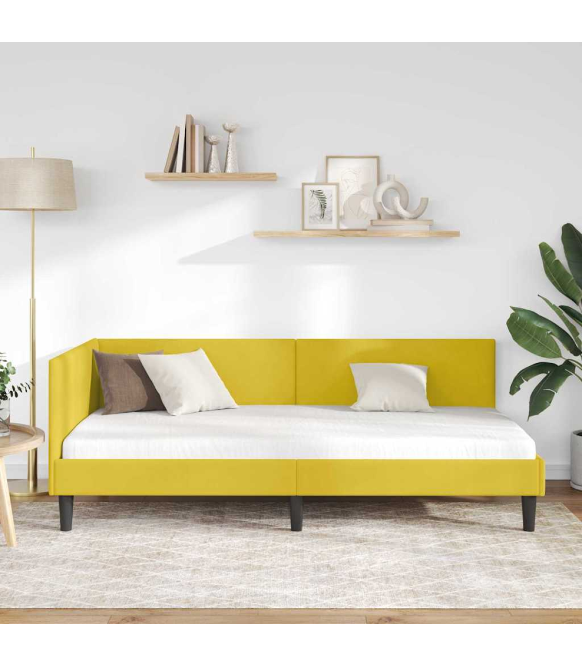vidaXL Corner Bed Frame Yellow 80 x 200 cm Velvet and Engineered wood