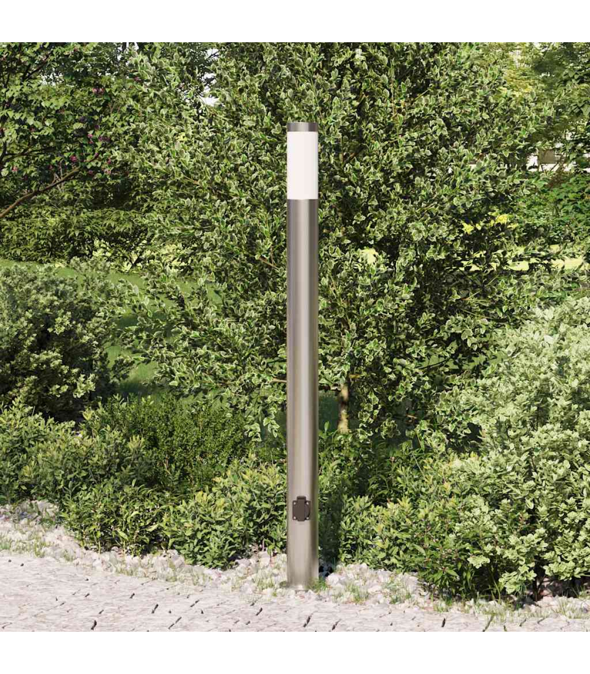 Enhance your outdoor space with this sleek and functional bollard light! Long-lasting material with IP44 rating: Made from stainless steel with an IP44 rating, this outdoor floor light is robust, weather-resistant, and perfect for long-term outdoor use.Built-in outlet: The garden floor light features a built-in power socket, allowing you to plug in other outdoor appliances or devices with ease. Enjoy easy access to power for your festive lights, phone chargers, or other essentials in your garden.With diffuser: The outdoor standing light comes with a plastic diffuser that helps to protect the light source from elements such as dust, water, and debris, while also providing an even and diffused light output.Enhanced safety: The outdoor standing light brightens your outdoor space, improving safety by minimising tripping hazards.Versatility: The stylish patio floor light is perfect for various outdoor lighting applications. Use it to illuminate your garden, patio, pathway, driveway, or porch, while also enhancing your outdoor decor. Do not connect this product to any power supply or adapter other than one described in the manual, on the name plate, or specifically recommended by vidaXL. This appliance should not be used by children of 14 years or younger, and persons with reduced physical, sensory or mental capabilities or lack of experience and knowledge concerning use of electronic appliances. Electricity is dangerous. Damage and improper installation, use or alteration (replacement of individual components) can lead to damage to the unit and mains wiring, resulting in electric shock and danger to the user. Do not operate this product in explosive atmospheres, such as in the presence of flammable liquids, gases and dust. Do not switch on the product if the connecting cable or adapter are visible damaged. Never open or insert anything into electrical fittings or equipment. Doing this sort of thing can lead to serious danger to life from electric shock. If the external flexible cable or cord of this luminaire is damaged, it shall be exclusively replaced by the manufacturer or his service agent or a similar qualified person in order to avoid a hazard. Turn off power while installing and maintaining. Make sure the bulbs have cooled down. This product is only to be installed outside arm’s reach. the connection to IPX4 rated socket outlets