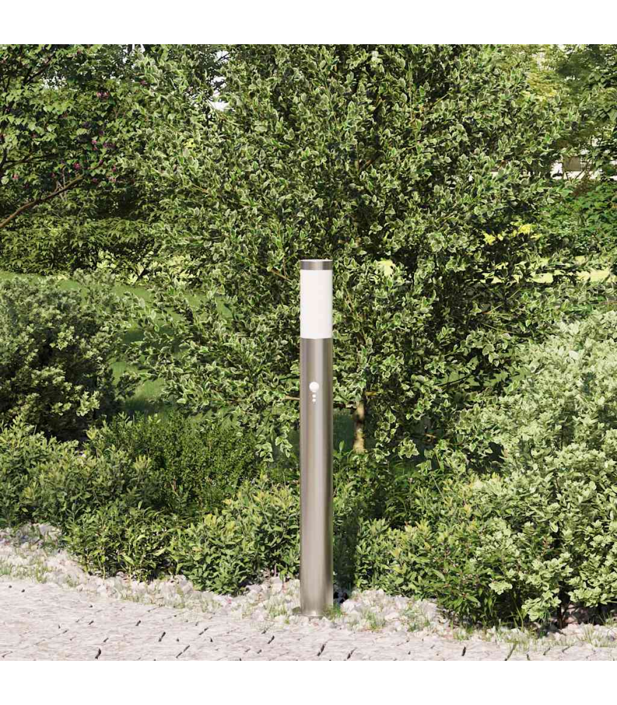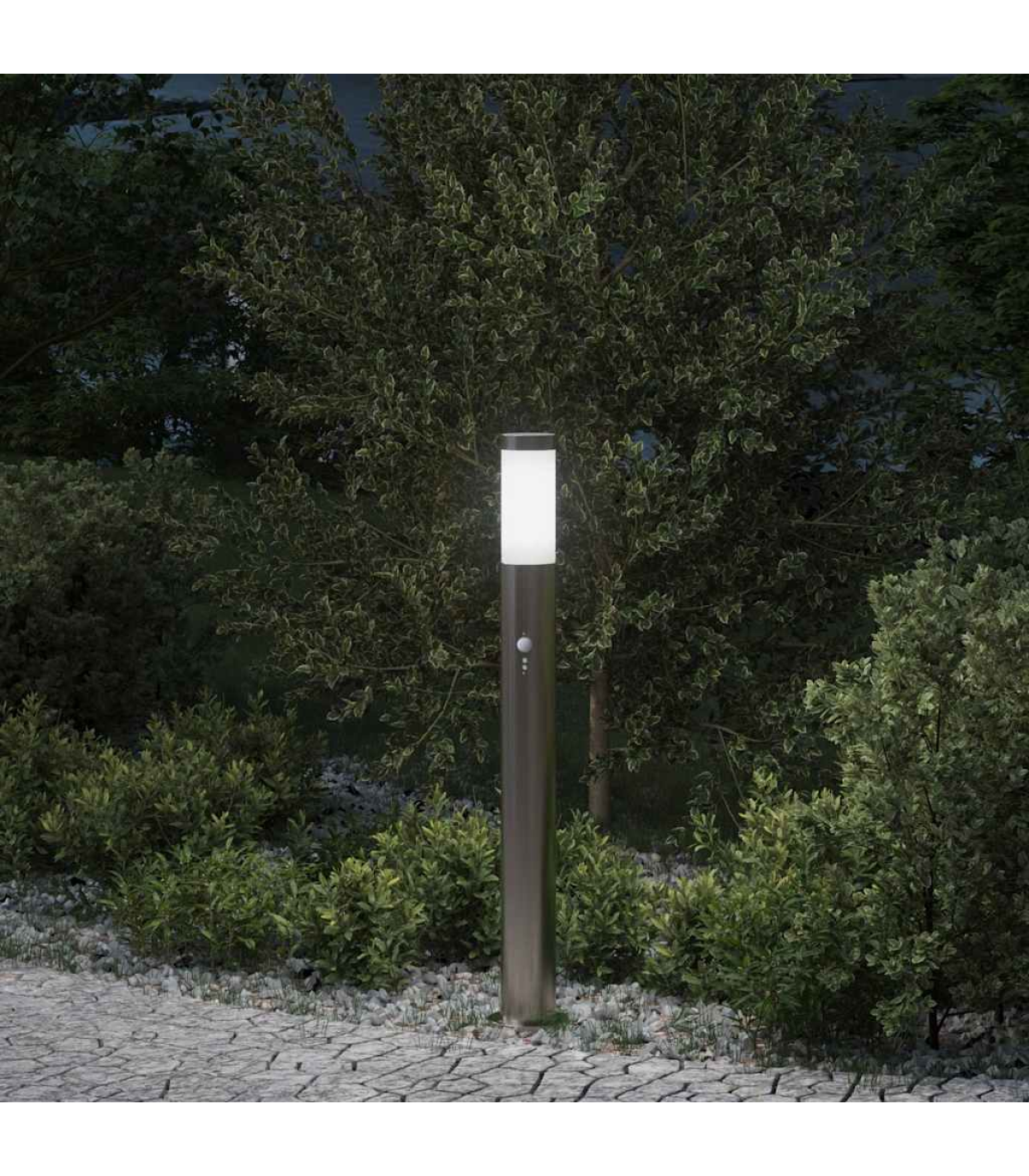 Enhance your outdoor space with this sleek and functional bollard light! Long-lasting material with IP44 rating: Made from stainless steel with an IP44 rating, this outdoor floor light is robust, weather-resistant, and perfect for long-term outdoor use.PIR motion sensor: The outdoor standing lamp is equipped with a built-in PIR (passive infrared) motion sensor, boasting a 120° detection angle and an effective range of 5-8 meters. You can adjust both the brightness sensitivity and the lighting duration, selecting a relay time between 10 seconds and 5 minutes. The light automatically turns on when motion is detected.With diffuser: The outdoor standing light comes with a plastic diffuser that helps to protect the light source from elements such as dust, water, and debris, while also providing an even and diffused light output.Enhanced safety: The outdoor standing light brightens your outdoor space, improving safety by minimising tripping hazards.Versatility: The stylish patio floor light is perfect for various outdoor lighting applications. Use it to illuminate your garden, patio, pathway, driveway, or porch, while also enhancing your outdoor decor. Do not connect this product to any power supply or adapter other than one described in the manual, on the name plate, or specifically recommended by vidaXL. This appliance should not be used by children of 14 years or younger, and persons with reduced physical, sensory or mental capabilities or lack of experience and knowledge concerning use of electronic appliances. Electricity is dangerous. Damage and improper installation, use or alteration (replacement of individual components) can lead to damage to the unit and mains wiring, resulting in electric shock and danger to the user. Do not operate this product in explosive atmospheres, such as in the presence of flammable liquids, gases and dust. Do not switch on the product if the connecting cable or adapter are visible damaged. Never open or insert anything into electrical fittings or equipment. Doing this sort of thing can lead to serious danger to life from electric shock. If the external flexible cable or cord of this luminaire is damaged, it shall be exclusively replaced by the manufacturer or his service agent or a similar qualified person in order to avoid a hazard. Turn off power while installing and maintaining. Make sure the bulbs have cooled down. This product is only to be installed outside arm’s reach. the connection to IPX4 rated socket outlets
