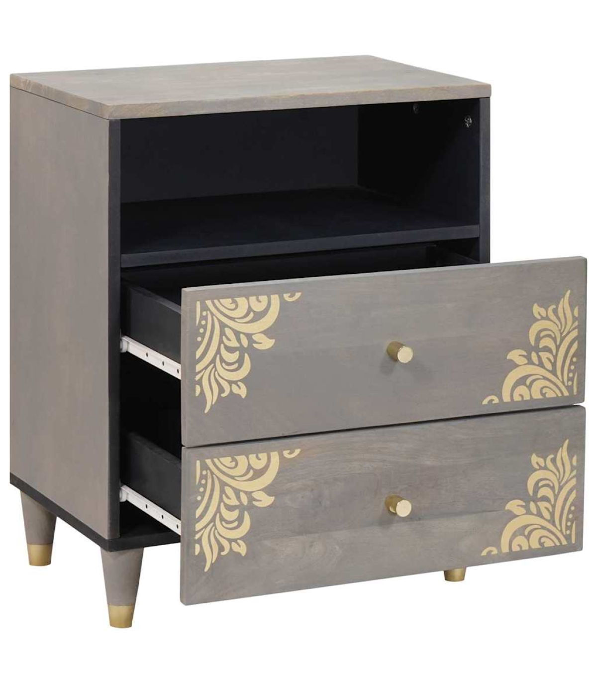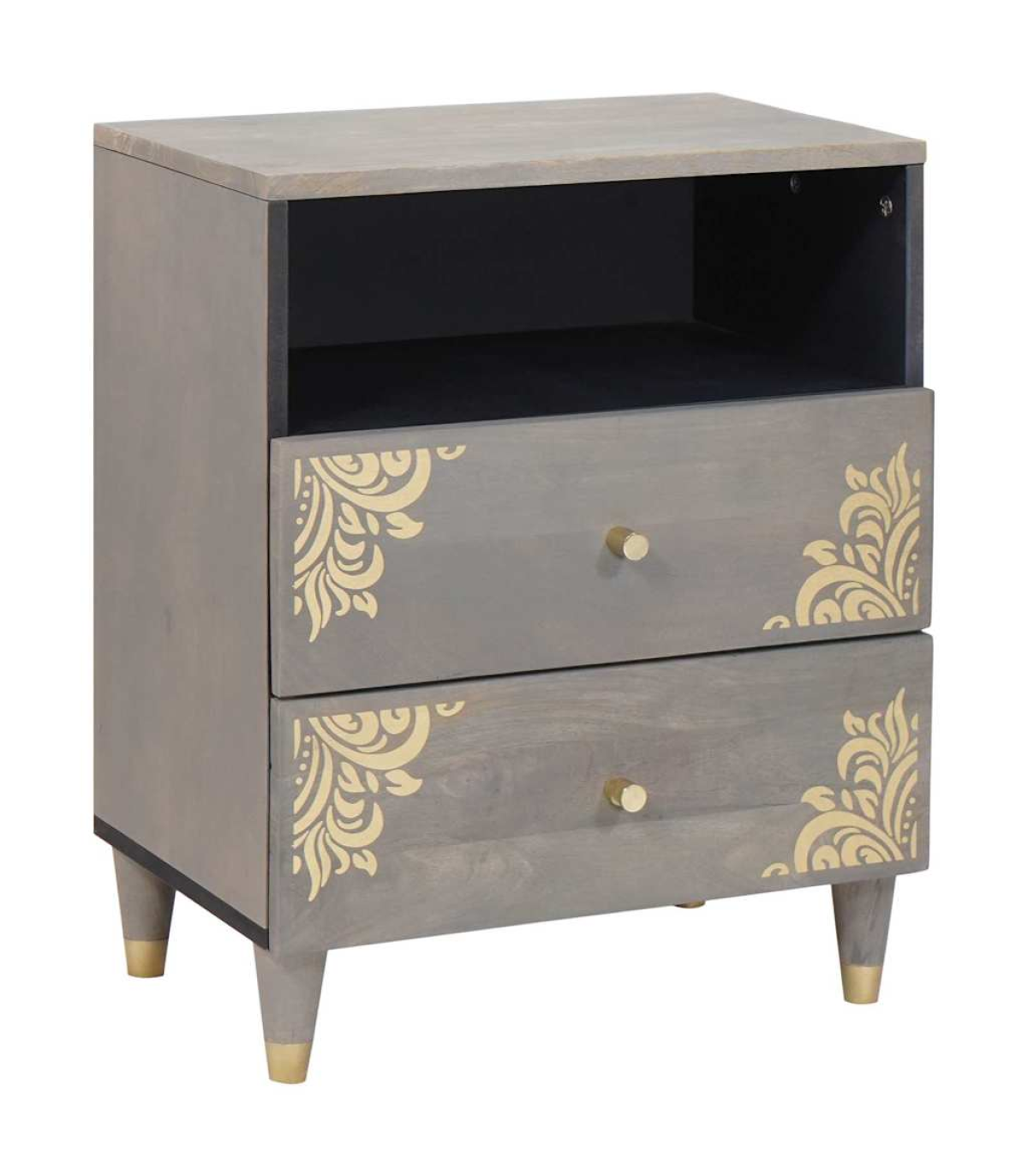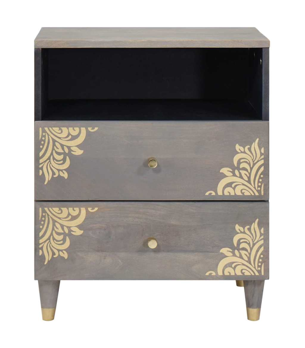 The Modern Bedside Cabinet is a must-have in any bedroom, blending style with practicality. Its sleek rectangular shape and elegant lines suit any modern decor. The warm wood tones and contemporary design make it a lovely focus point while keeping your essentials handy. Its compact size fits nicely beside your bed, perfect for a lamp, an alarm clock, or that book you’ve been itching to read. Materials: Crafted from tough solid mango wood with a natural look and flat matte finish. It’s built to last and resist wear and tear. Plus, engineered wood adds stability without looking bulky. Included Components: This Modern Bedside Cabinet is all about functionality. It features a classic drawer with shiny golden knobs for easy access and a spacious area for your bits and bobs. The shelf underneath is great for keeping your favourite books or gadgets close by, making the most of your space. Features / Function / Design: The hand-painted front is a real showstopper, showcasing creativity and craftsmanship. It’s durable, compact, and stays stylish. The sturdy legs made from solid mango wood ensure it’s stable and visually striking. Recommended Uses: Ideal for indoor use, this bedside cabinet shines in bedrooms where style and space-saving are key. Whether in guest rooms or master suites, it works great for keeping things like your nightly water close at hand and adding to your decor. Care & Maintenance: Keeping this cabinet in good nick is easy. Just wipe it down with a dry cloth to avoid dust. Stay clear of excessive moisture or harsh cleaners to keep the matte finish and hand-painted details looking fresh, ensuring it stays a beloved part of your bedroom for years.