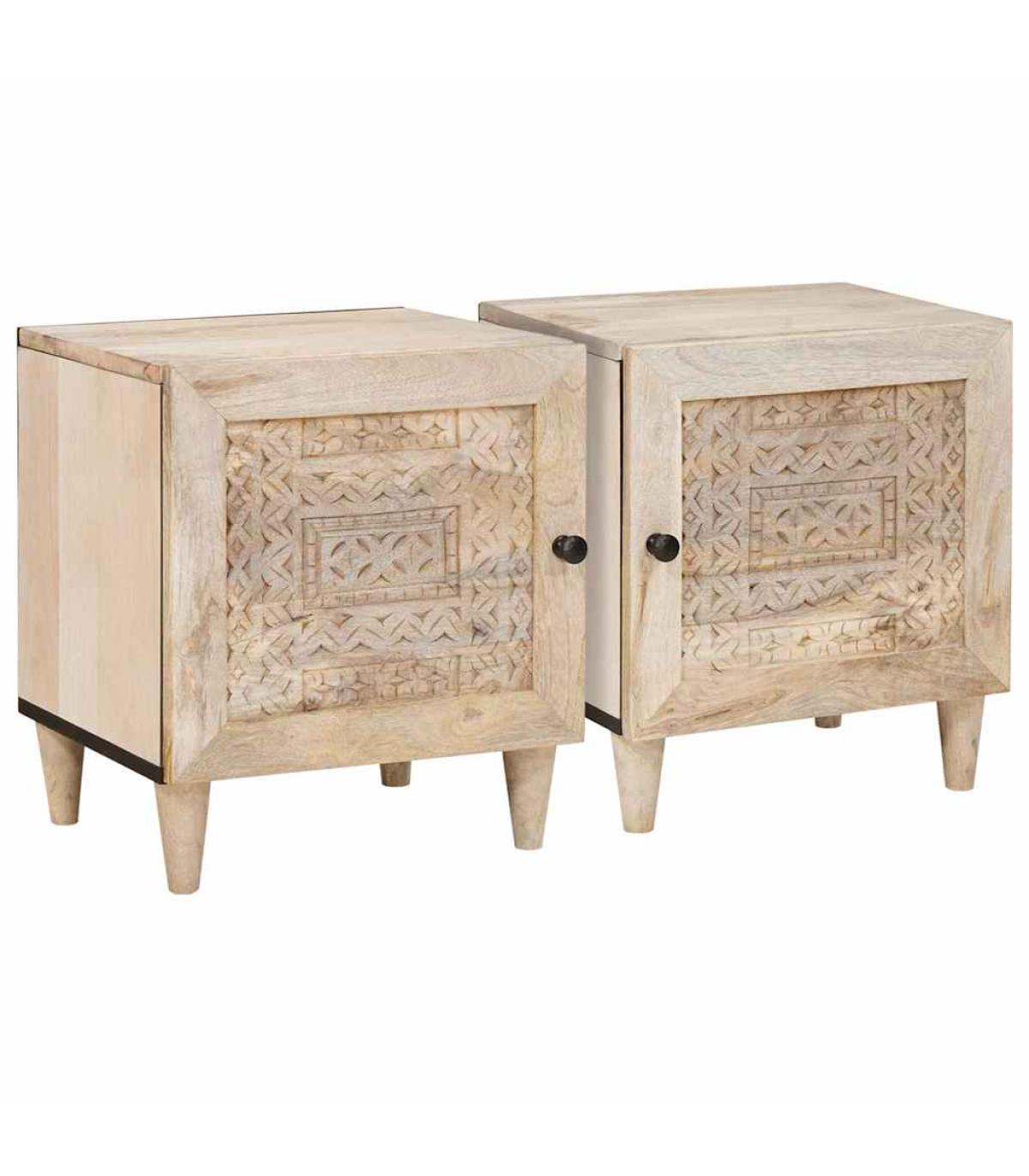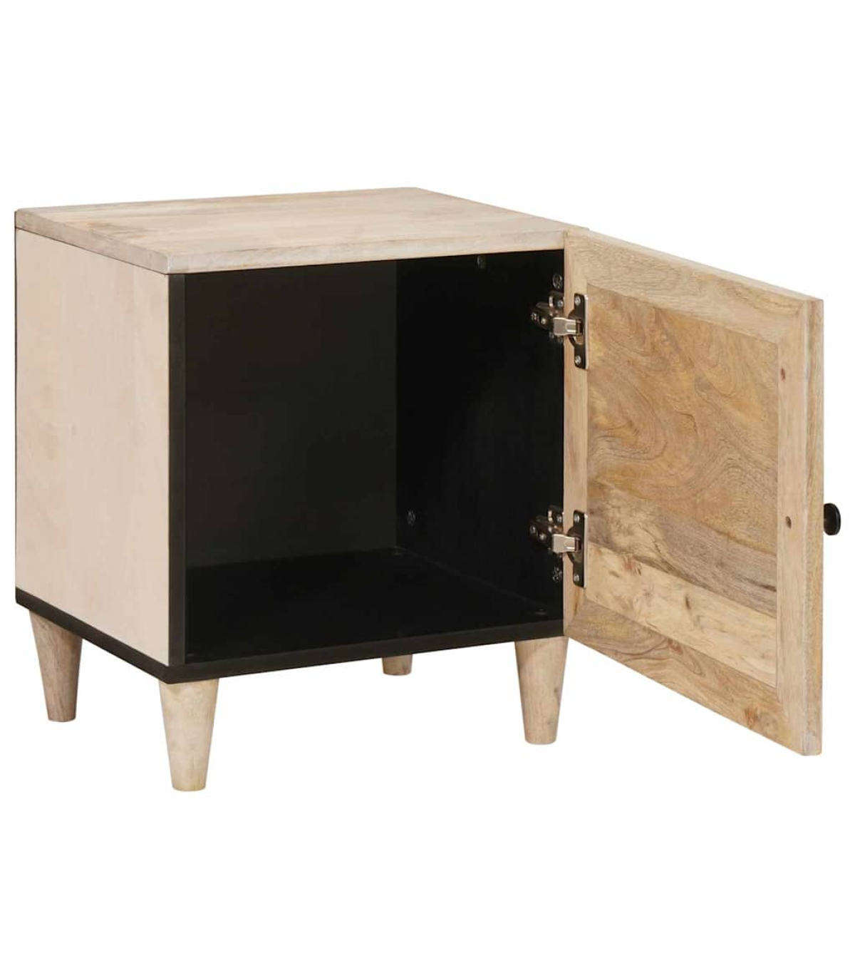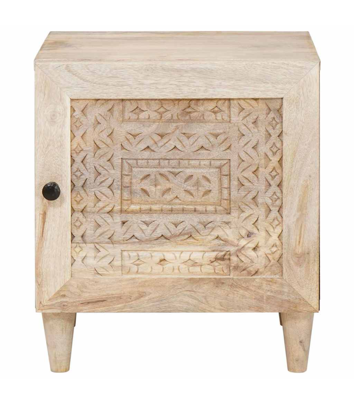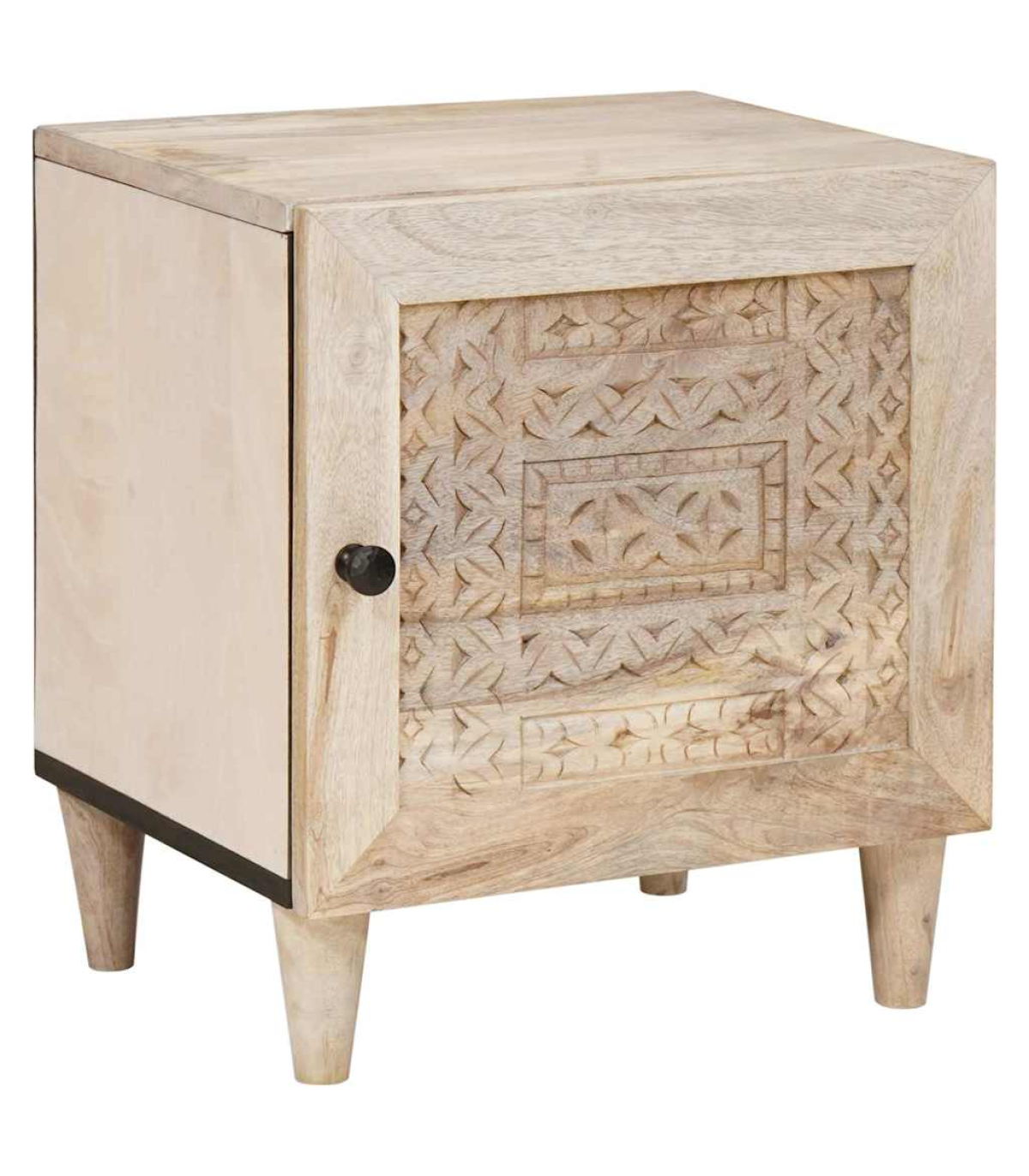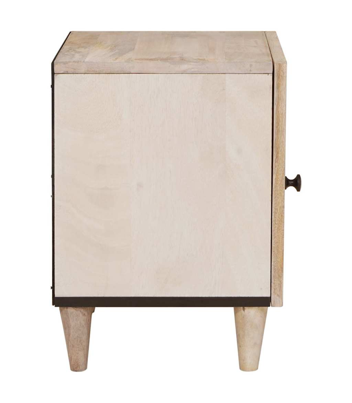 This rustic bedside table is a fab mix of practicality and style, perfect for your living room or bedroom. Made from solid mango wood, it has a warm, textured finish that adds loads of character to your space. Its compact rectangular shape fits snugly next to your bed, making it a handy spot for your lamp, alarm clock, or personal bits and bobs. The matte finished frame adds an elegant touch, and its simple style complements all sorts of interior decor. Materials: The table is made from durable solid mango wood, featuring a textured surface that showcases the natural grain and rich tones. Its rugged beauty fits right in with the rustic vibe, making it a strong and stylish piece for any room. Included Components: There’s a single storage compartment covered by a hinged door with a matte finish knob, offering practical space to stash your stuff. The back is unfinished for wall placement, ensuring strength and stability. The tapered legs add a nice silhouette while providing solid support. Features / Function / Design: With its rustic style, this table isn’t just a storage solution; it brings a cozy, natural vibe to your room. Its sturdy frame, hinge door, and practical size make it perfect for storing your night-time essentials in small spaces. Recommended Uses: Great for bedrooms or living rooms, this compact table can easily serve as a nightstand or a side table next to sofas and armchairs, blending functionality with style. Its versatility suits different room decors, adding charm wherever it sits. Care & Maintenance: To keep the table's rustic charm, just wipe it down with a dry cloth to dust it off. Avoid harsh cleaners or abrasives that could damage the surface, ensuring it stays beautiful for the long haul.