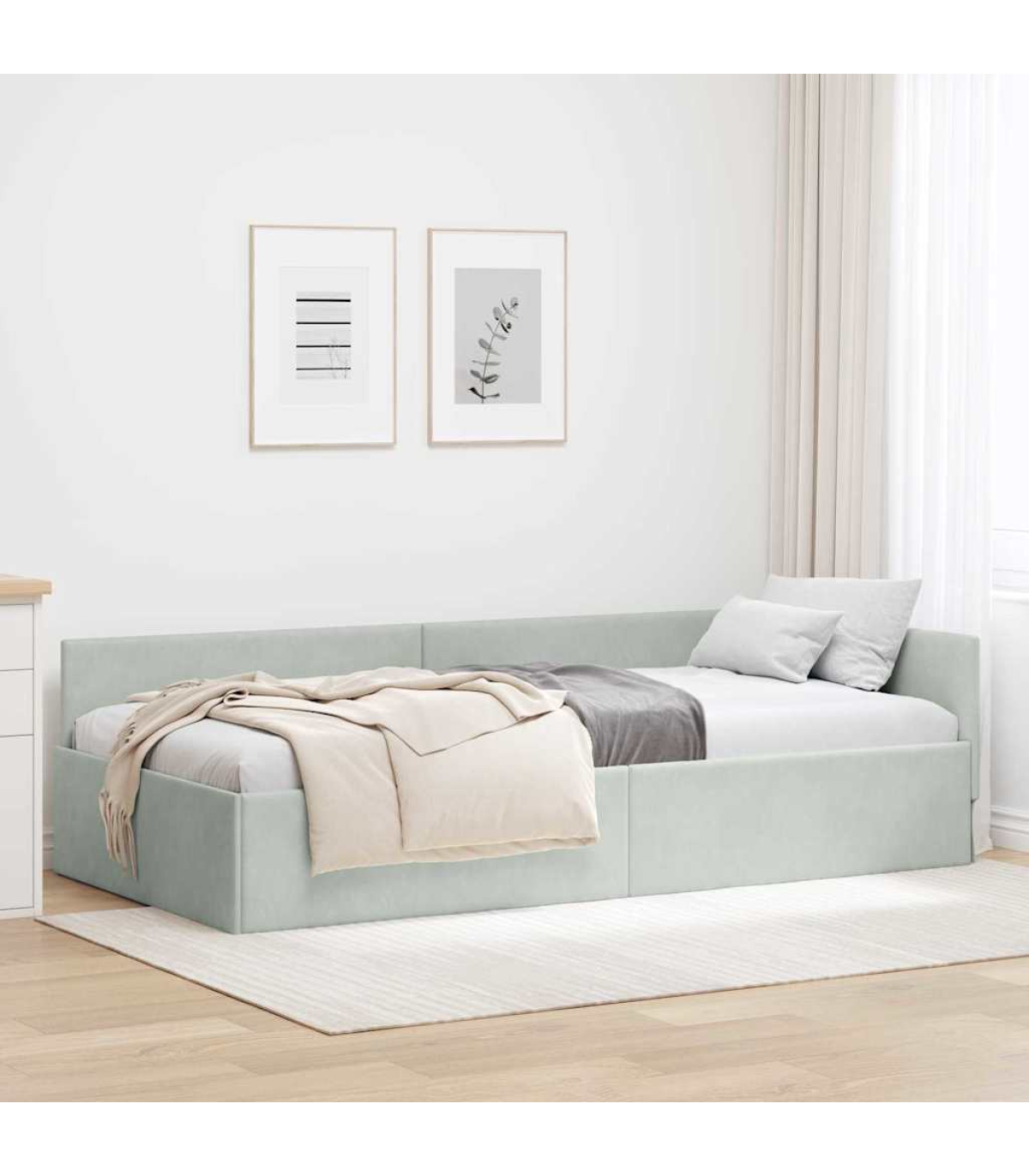 vidaXL Corner Bed Frame Other with Headboard Light grey 90 x 200 cm