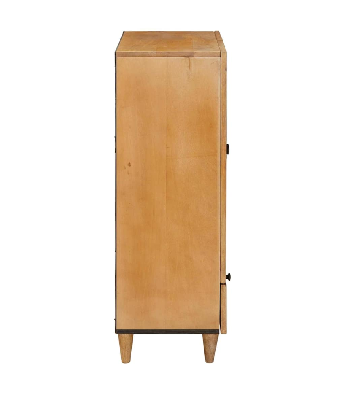 The Solid Mango Wood Highboard is a stylish storage solution that brings both flair and function to any living or dining area. Its rectangular shape and modern design, with slick lines and a textured surface, make it a versatile addition that fits in with a range of decor styles. With loads of storage, it’s perfect for keeping your dining bits tidy or showing off your favourite decorative items, while the textured look gives it a unique vibe. Solid Mango Wood Construction – Made from top-notch solid Mango wood, this highboard is all about durability and a solid base. The natural grain patterns add warmth and authenticity, giving it a timeless look that works with both modern and traditional decor. Board Shelves – Thanks to its board shelves, this highboard makes it easy to keep your stuff organised. Whether you're stashing dinnerware or showcasing decor, the shelves provide stability and plenty of space, boosting its practicality. Sleek Hinge Door Design – The hinge doors come with matte-finished knobs for a contemporary touch, plus easy access to your stored things. This design keeps everything organised while looking fab. Versatile Usage – Great for living or dining rooms, the highboard’s design and functionality fit right in a wide range of spaces. Its size makes it a standout piece while offering loads of storage for everything from dining must-haves to books or decorative bits. Maintenance Guide – Keeping your highboard looking fresh is easy; just give it a quick wipe with a dry cloth. Avoid nasty chemicals and abrasive stuff to protect the wood finish, ensuring it stays beautiful for ages.