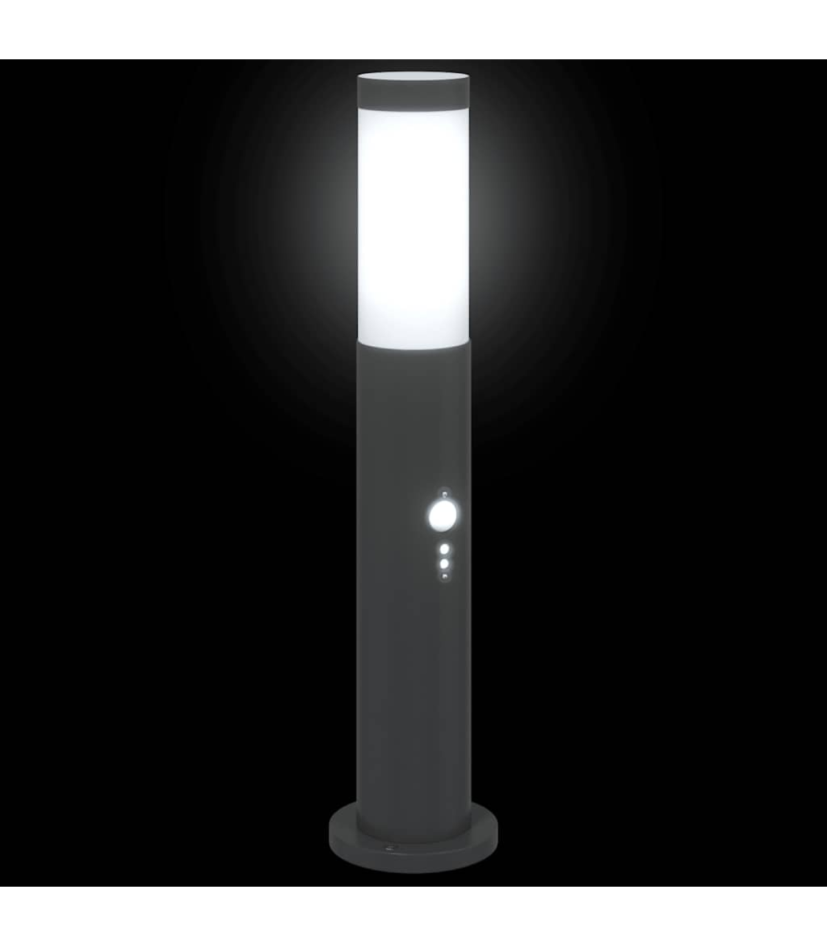 Enhance your outdoor space with these sleek and functional bollard lights! Long-lasting material with IP44 rating: Made from stainless steel with an IP44 rating, this outdoor floor light is robust, weather-resistant, and perfect for long-term outdoor use.PIR motion sensor: The outdoor standing lamp is equipped with a built-in PIR (passive infrared) motion sensor, boasting a 120° detection angle and an effective range of 5-8 meters. You can adjust both the brightness sensitivity and the lighting duration, selecting a relay time between 10 seconds and 5 minutes. The light automatically turns on when motion is detected.With diffuser: The outdoor standing light comes with a plastic diffuser that helps to protect the light source from elements such as dust, water, and debris, while also providing an even and diffused light output.Enhanced safety: The outdoor standing light brightens your outdoor space, improving safety by minimising tripping hazards.Versatility: The stylish patio floor light is perfect for various outdoor lighting applications. Use it to illuminate your garden, patio, pathway, driveway, or porch, while also enhancing your outdoor decor. Do not connect this product to any power supply or adapter other than one described in the manual, on the name plate, or specifically recommended by vidaXL. This appliance should not be used by children of 14 years or younger, and persons with reduced physical, sensory or mental capabilities or lack of experience and knowledge concerning use of electronic appliances. Electricity is dangerous. Damage and improper installation, use or alteration (replacement of individual components) can lead to damage to the unit and mains wiring, resulting in electric shock and danger to the user. Do not operate this product in explosive atmospheres, such as in the presence of flammable liquids, gases and dust. Do not switch on the product if the connecting cable or adapter are visible damaged. Never open or insert anything into electrical fittings or equipment. Doing this sort of thing can lead to serious danger to life from electric shock. If the external flexible cable or cord of this luminaire is damaged, it shall be exclusively replaced by the manufacturer or his service agent or a similar qualified person in order to avoid a hazard. Turn off power while installing and maintaining. Make sure the bulbs have cooled down. This product is only to be installed outside arm’s reach. the connection to IPX4 rated socket outlets