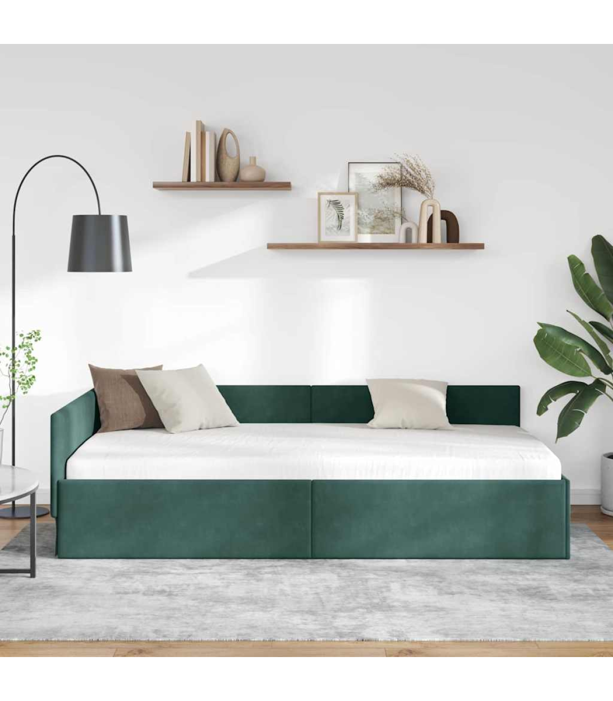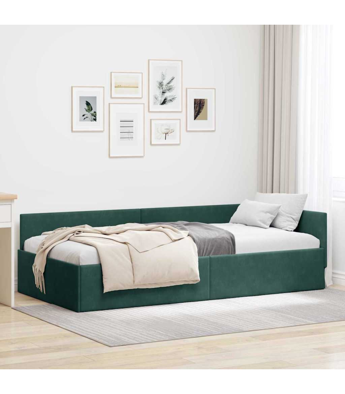vidaXL Corner Bed Frame Other with Headboard Dark green 100 x 200 cm