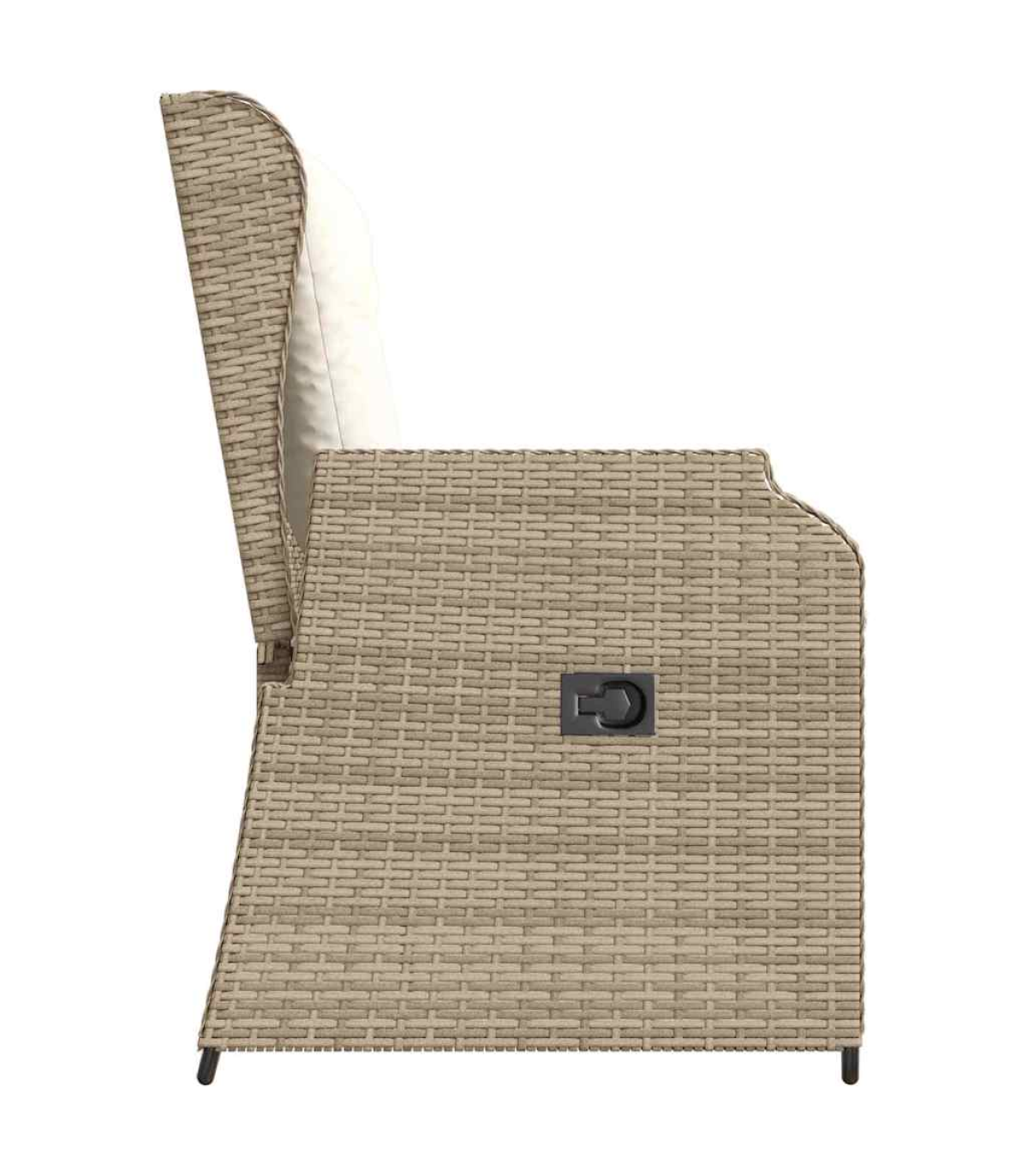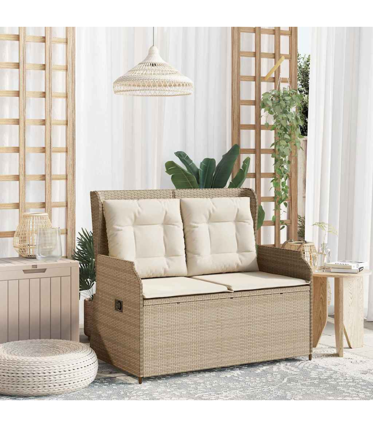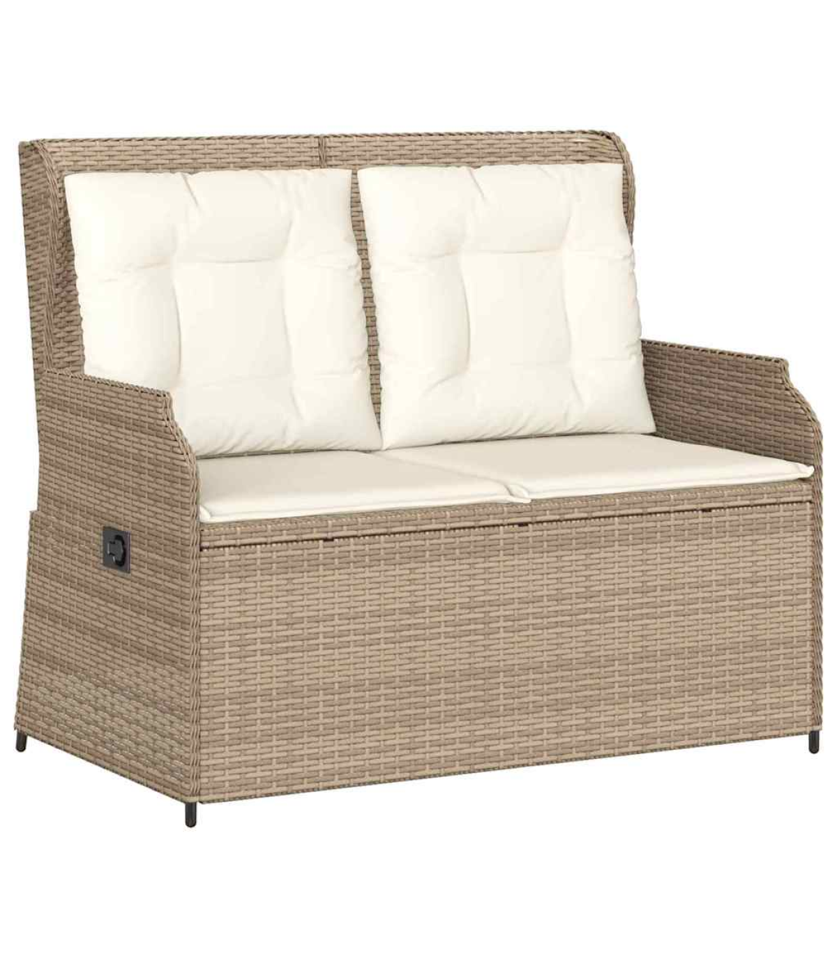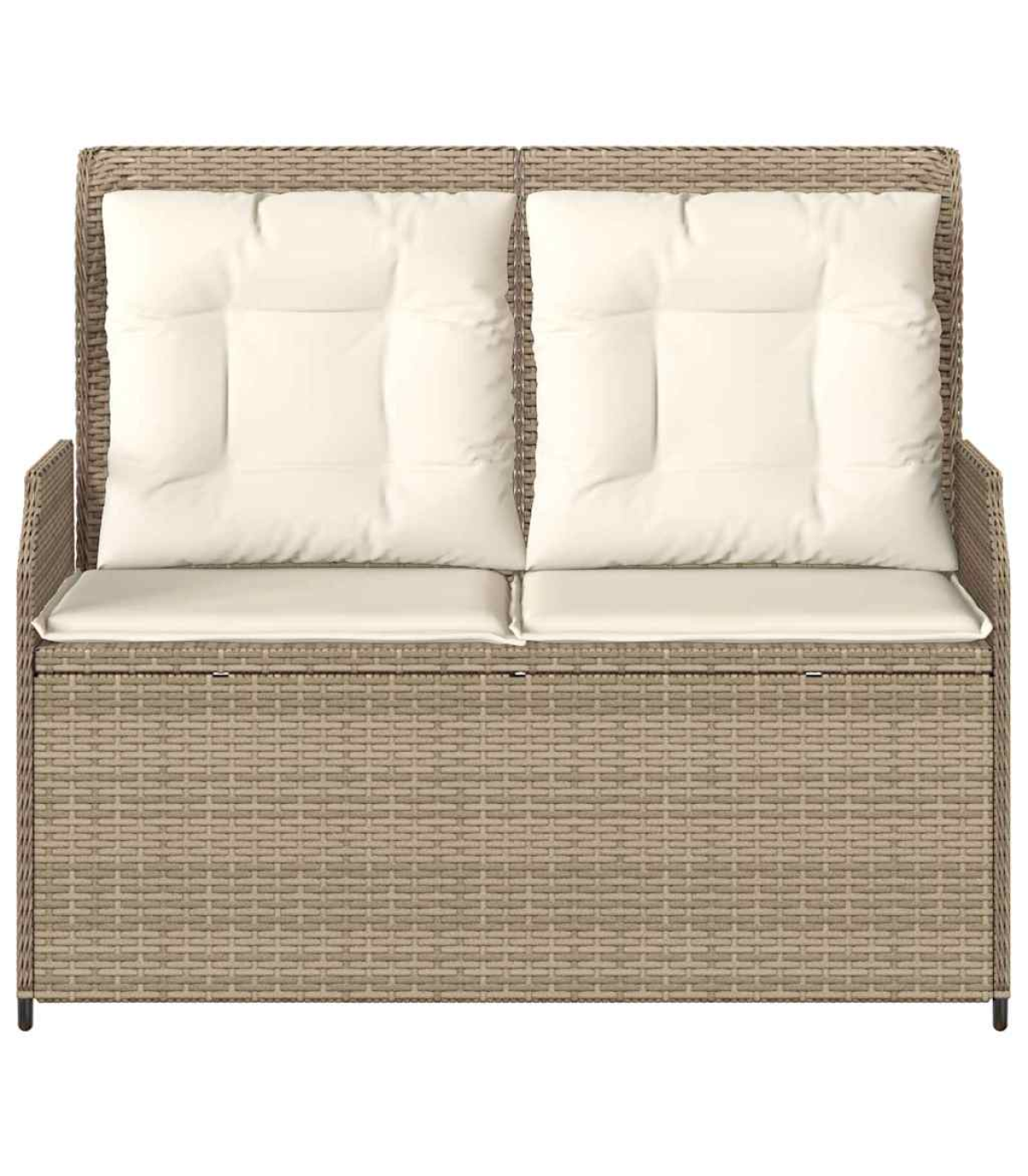 This reclining garden bench is the perfect mix of modern style and practicality. It's spot on for sprucing up your indoor or outdoor spaces. With its sleek design, it looks fab whether in the garden or living room, and offers a comfy place to relax. Adjustable Backrest - With a multi-position backrest, this bench lets you pick your comfy angle easily. It's just right for reading, lounging, or taking a breather on the terrace or in the garden. Robust Frame - The powder-coated steel frame makes this bench super stable and built to last. You can count on it to hold up against day-to-day wear and tear. Weather Resistant - Made from poly rattan, it’s tough against weather changes. No matter if it’s sunny or drizzling, the bench keeps looking good and doing its job, making it a great fit for indoors and outdoors. Minimalistic Design - With clean lines and a simple shape, it fits in with any decor. The black legs bring a cool touch, making it versatile for any home. Easy Maintenance - The cushion has a handy zipper, so you can whip it off and clean it in no time. This easy care keeps your bench looking fresh and welcoming for years. Maximum 110 kg per seat. Be aware of the risk of open fires and other sources of strong heat in the vicinity of the product.