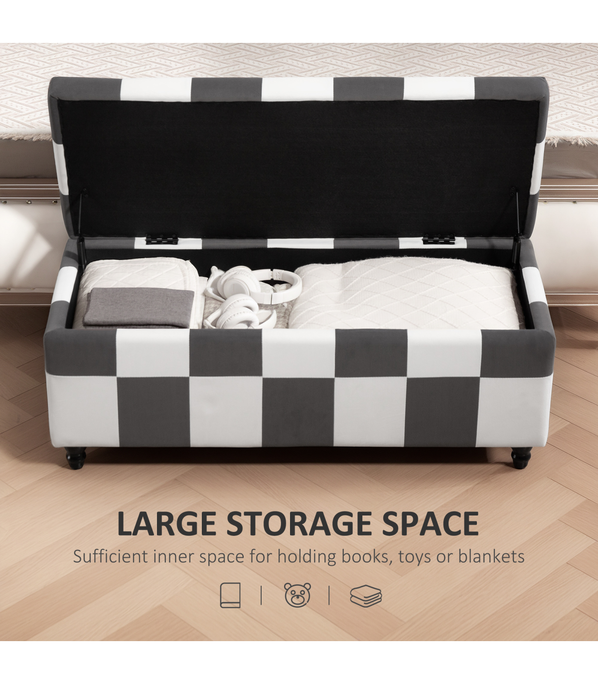 - Versatile: use as a general storage of home furnishings, office papers, as a toy box, blanket box, or even footstool
