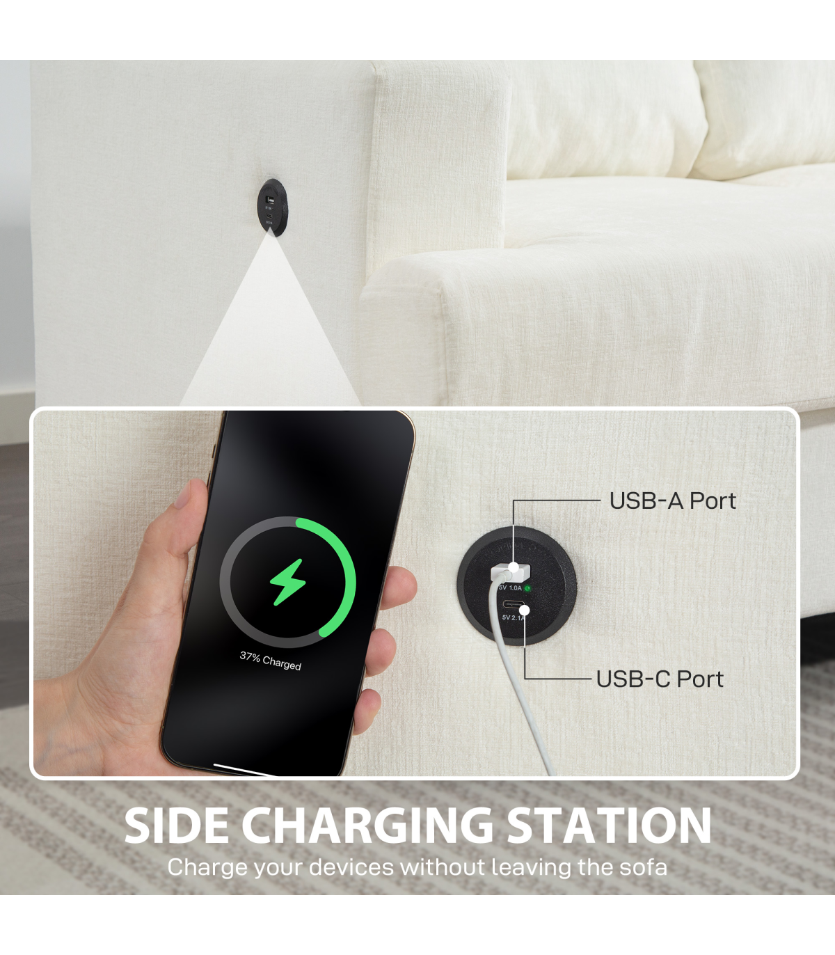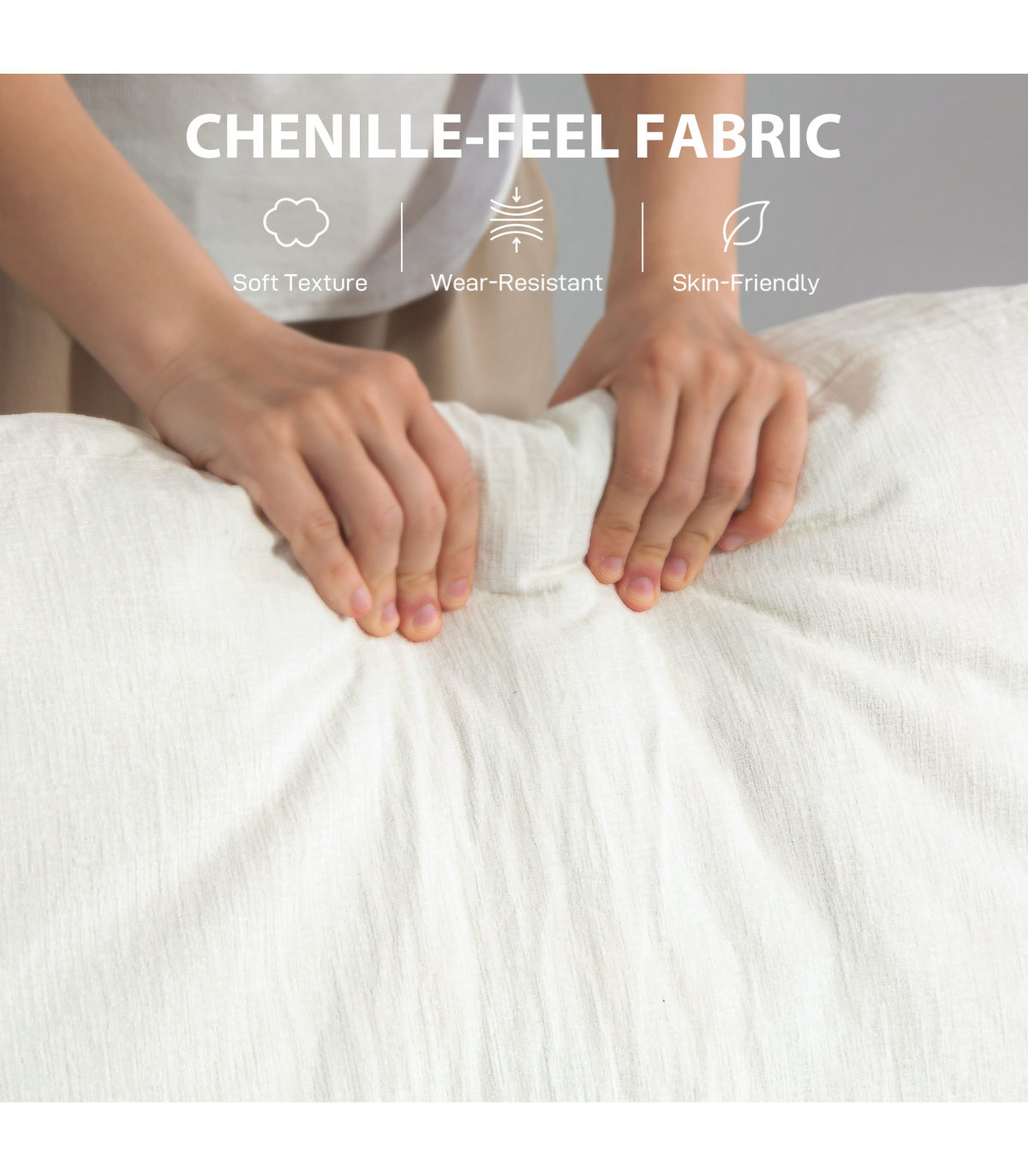 ● Chenille-feel fabric upholstery offers a luxurious touch