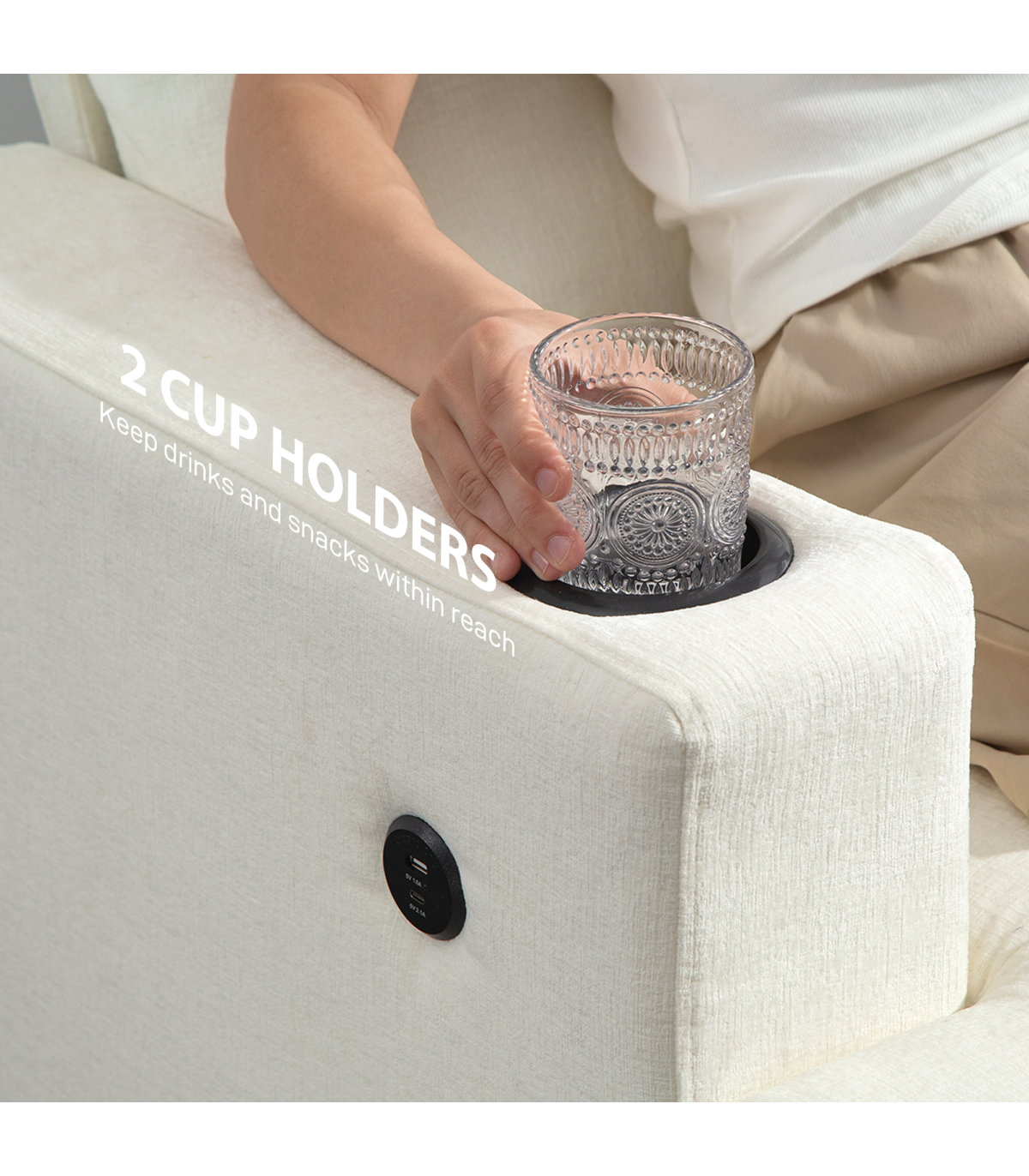 ● Two cupholders enhance relaxation with drinks